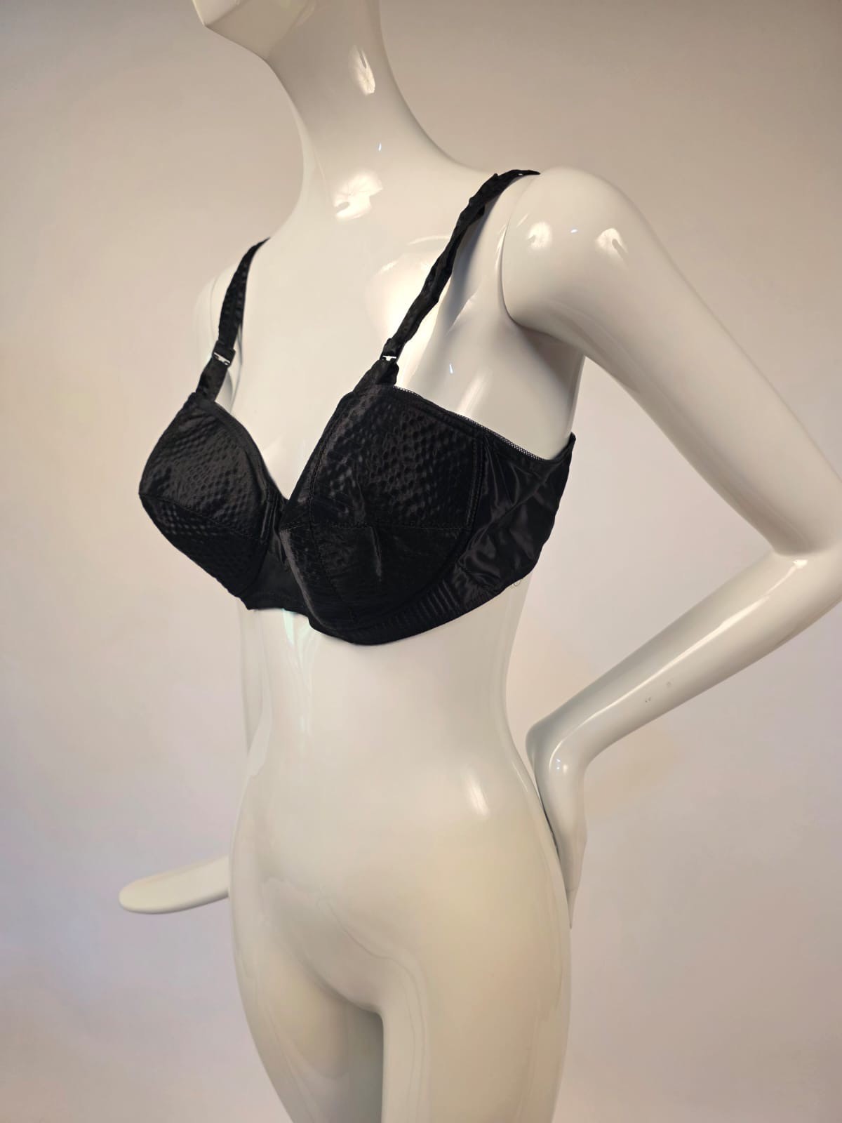 VINTAGE 1950 S BLACK SATIN BULLET BRA BRASSIERE SIZE 38 B - OLD SOTCK