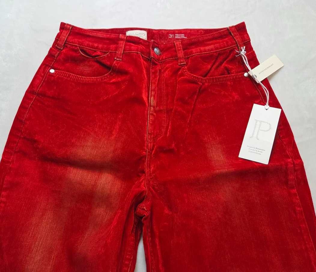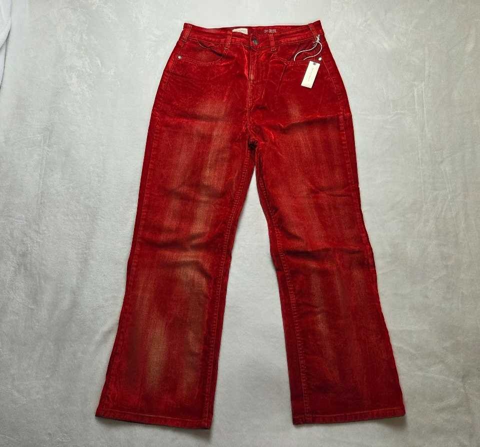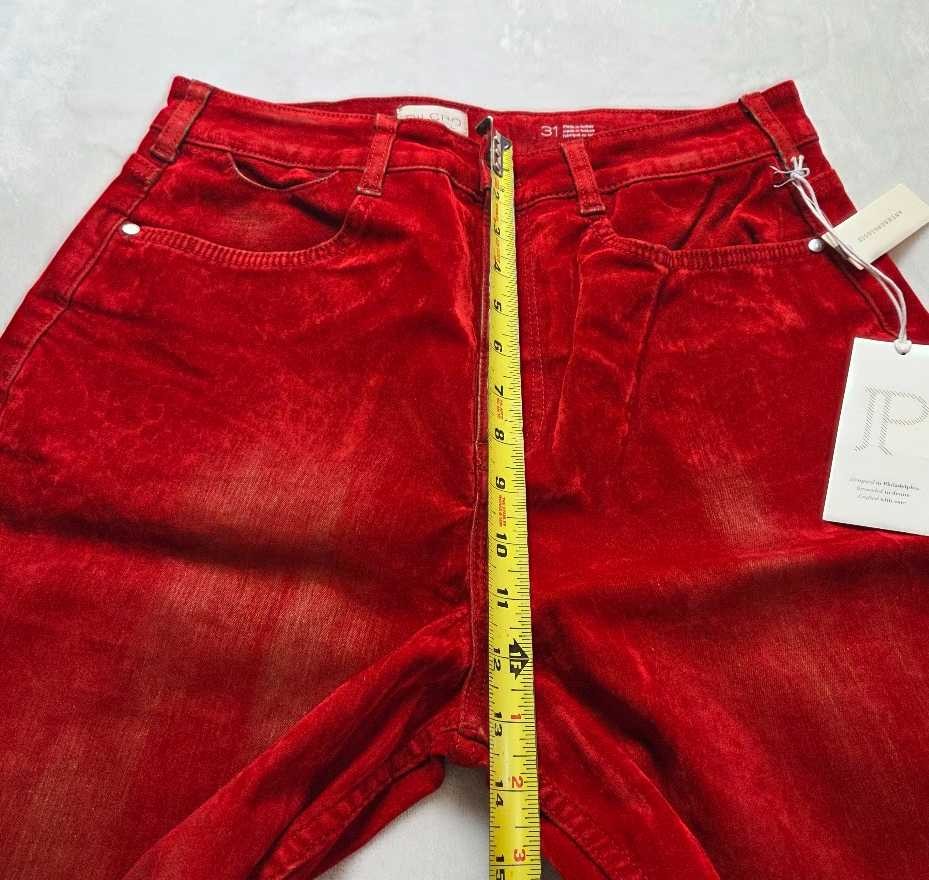 как выглядит New 31 Anthropologie x Pilcro The Annie flocked red velvet straight leg jeans фото
