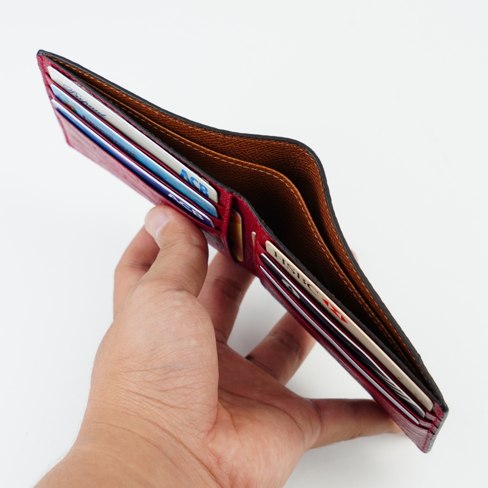 Genuine Ostrich Black/Red Leather Bifold Wallet Men's Skin Wallet Handmade