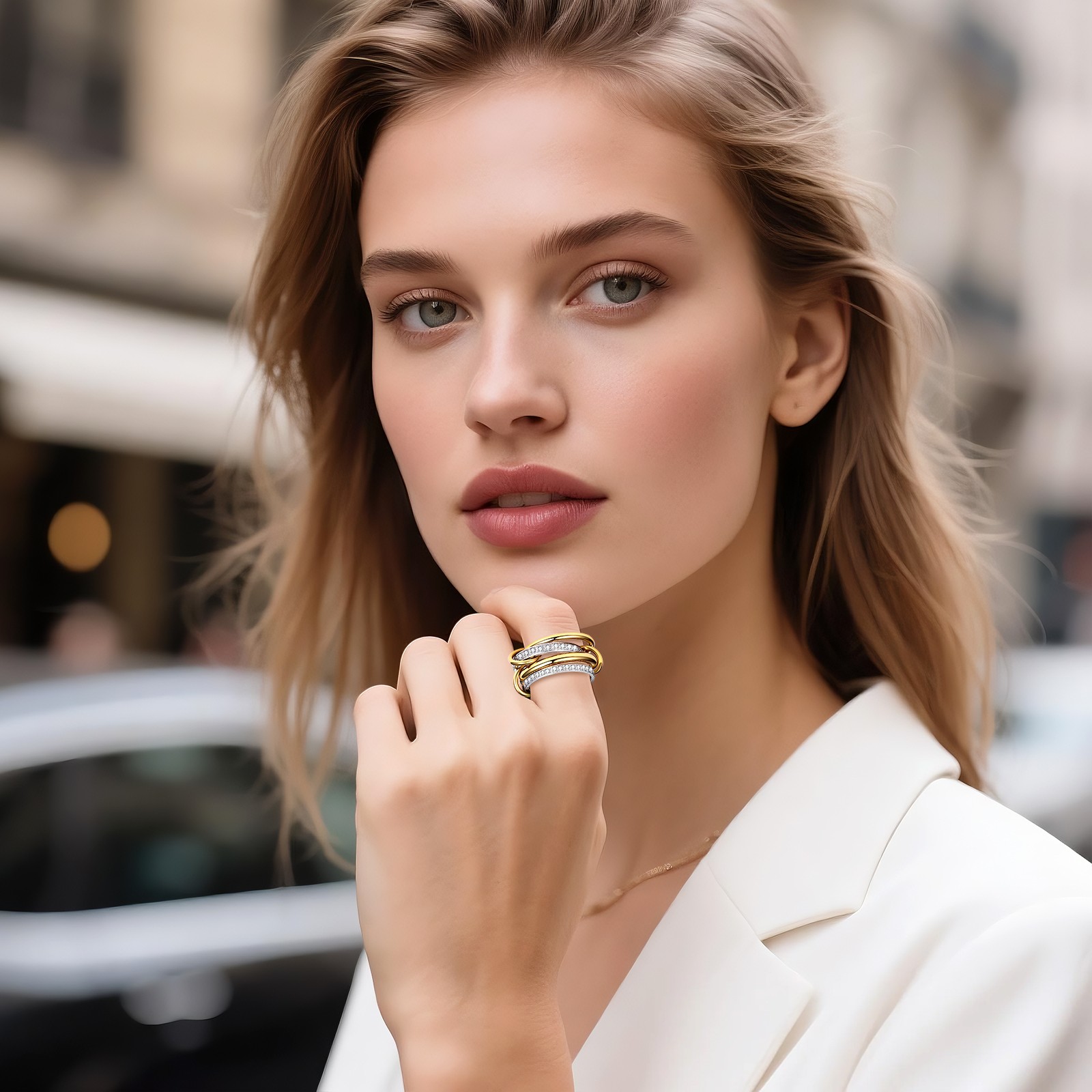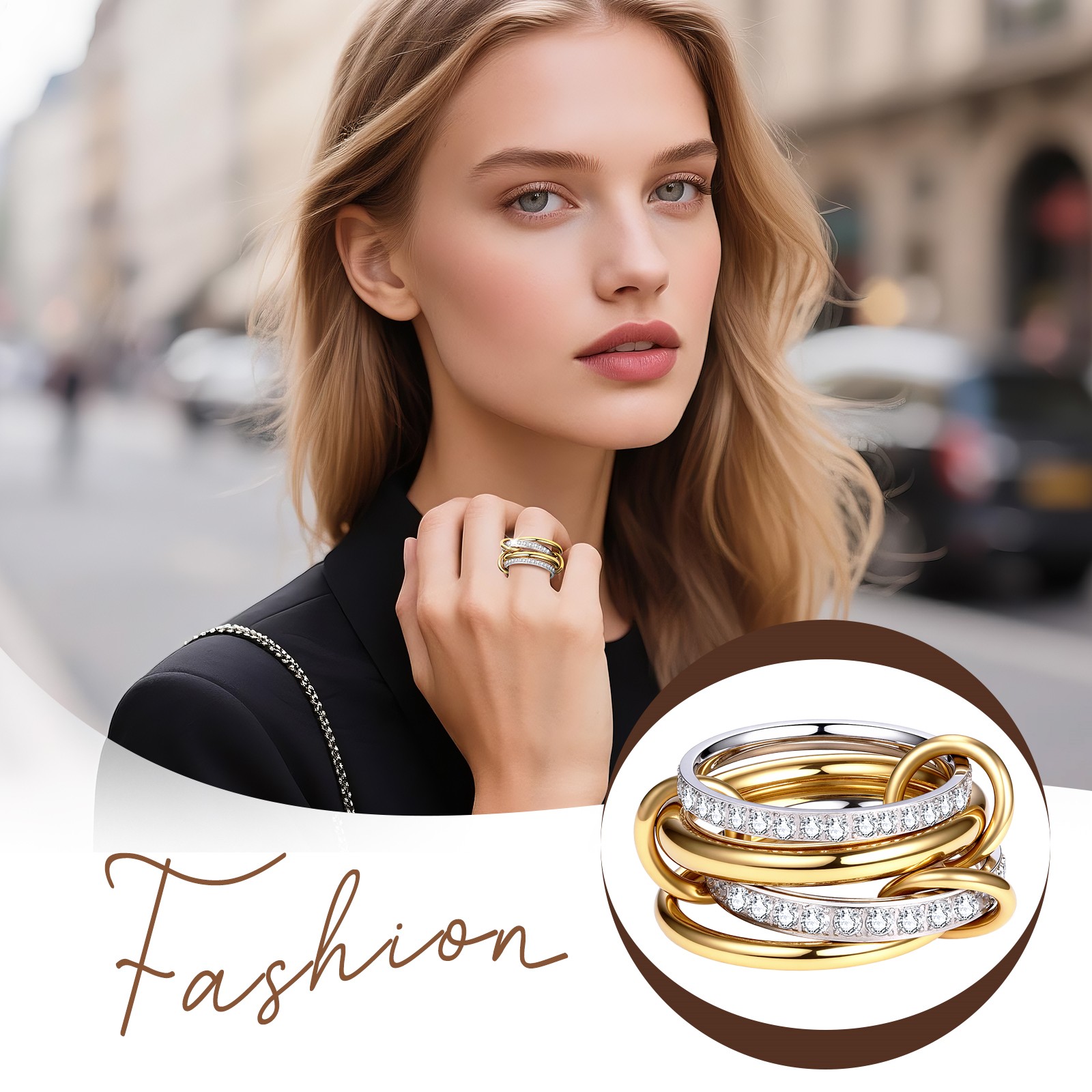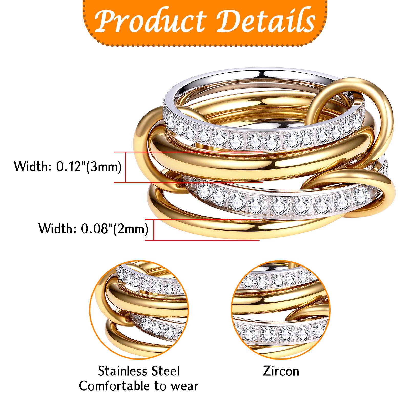14K Gold Plated Stackable Rings 4 Ring Set with CZ Interlocking Ring Stack Set