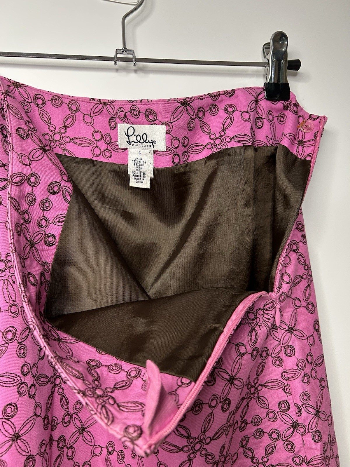 Vintage Lilly Pulitzer Women's A-Line Skirt Pink with Brown Embroidery Size 6