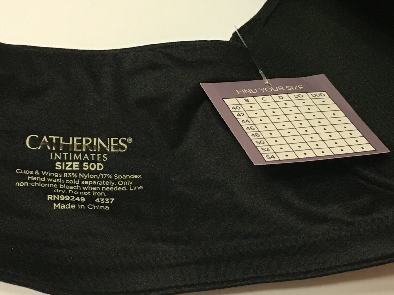 как выглядит Catherines Full Coverage Smooth Bra Underwire Black Adjustable Plus Size 50D фото