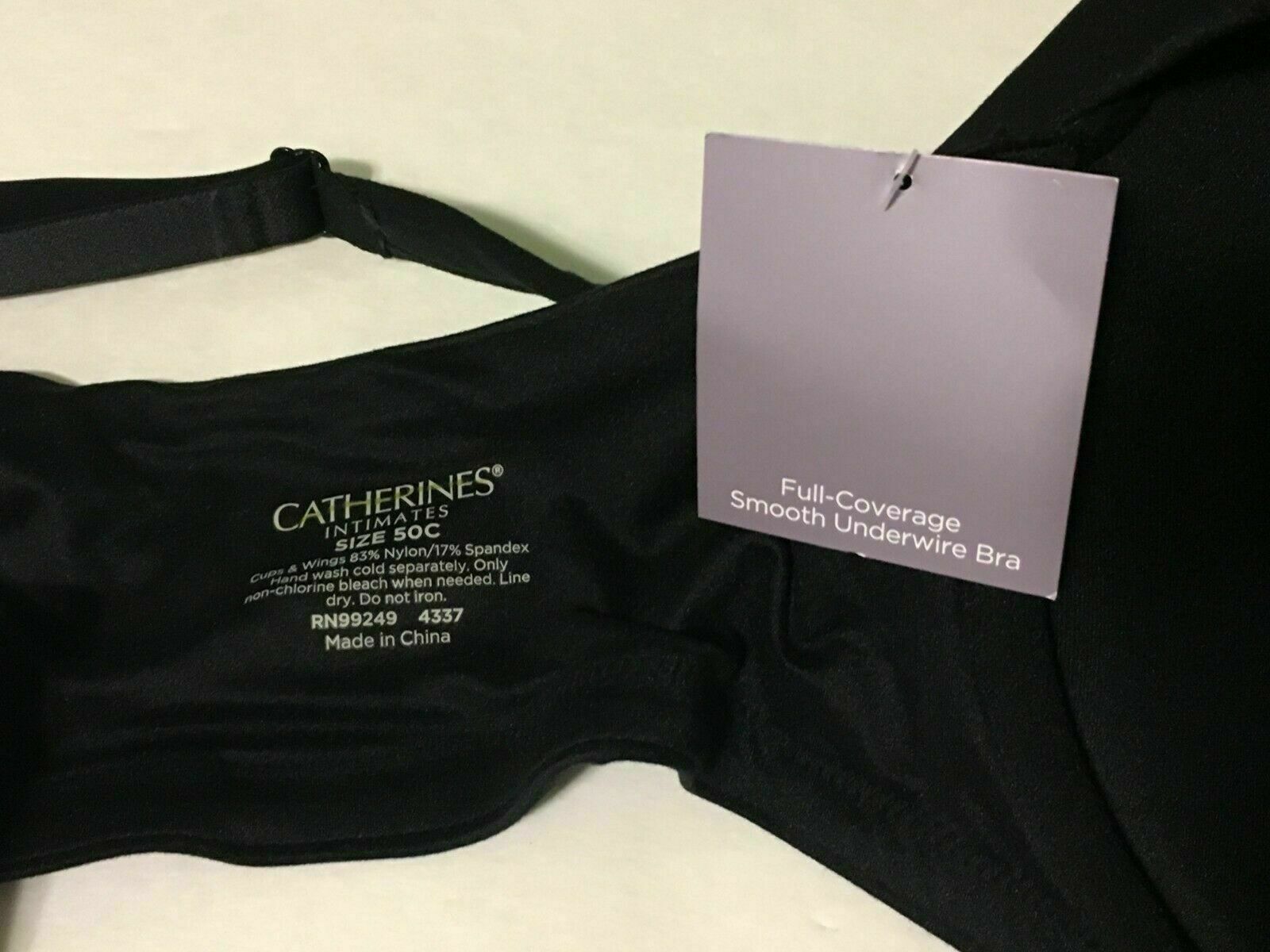 Catherines Full Coverage Smooth Bra Underwire Black Adjustable Plus Size 50C