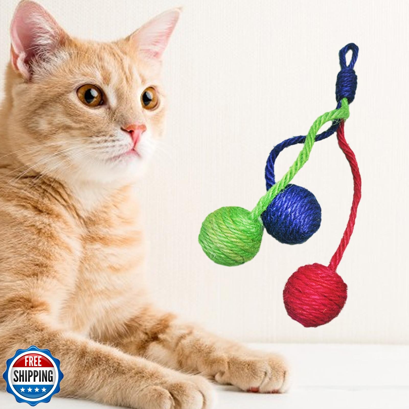 Leefasy Hanging Interactive Cat Toy Sisal Rope Ball, Eco Friendly Self Play B