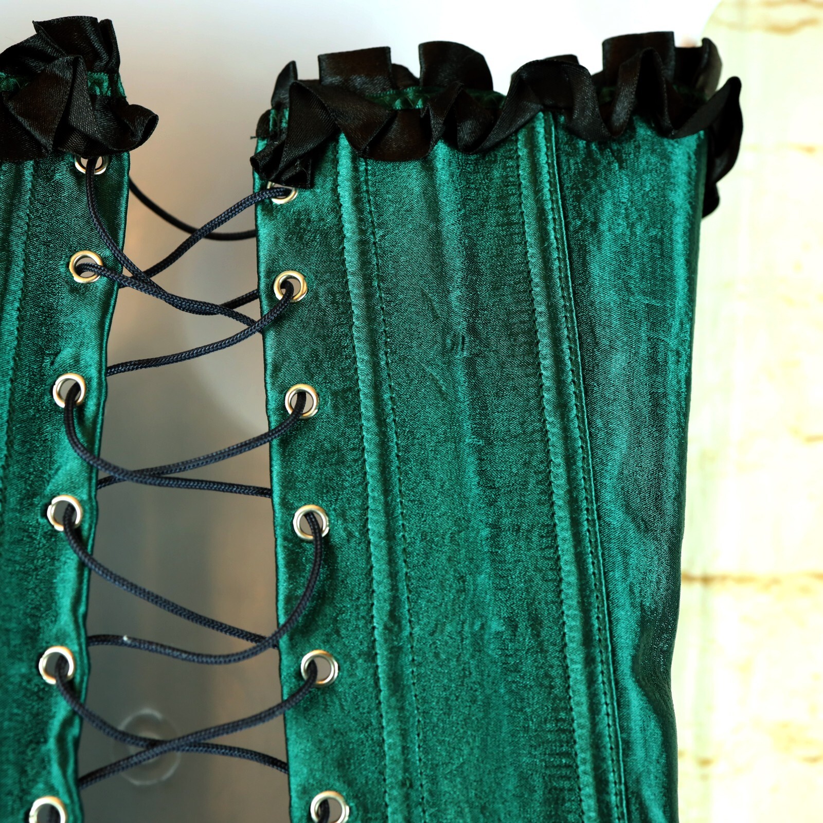 как выглядит Overbust Corset Womens L Green Satin Black Trim Boned Halloween Cosplay Goth фото