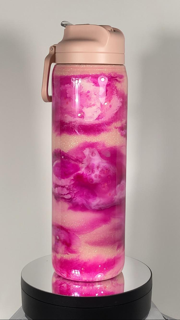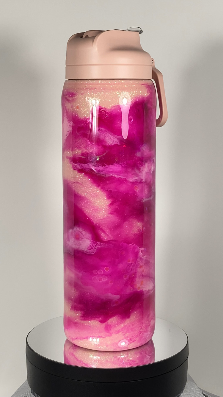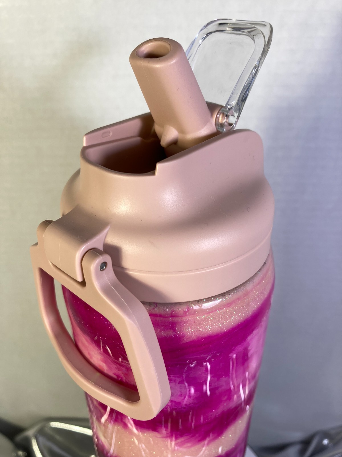 Handcrafted Pink Iridescent Glitter Tumbler 24oz. W/ lid straw