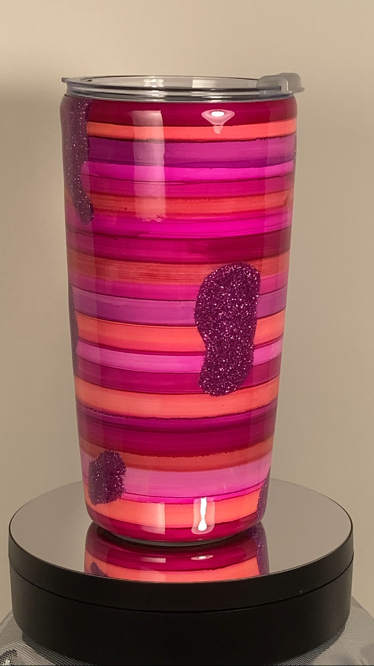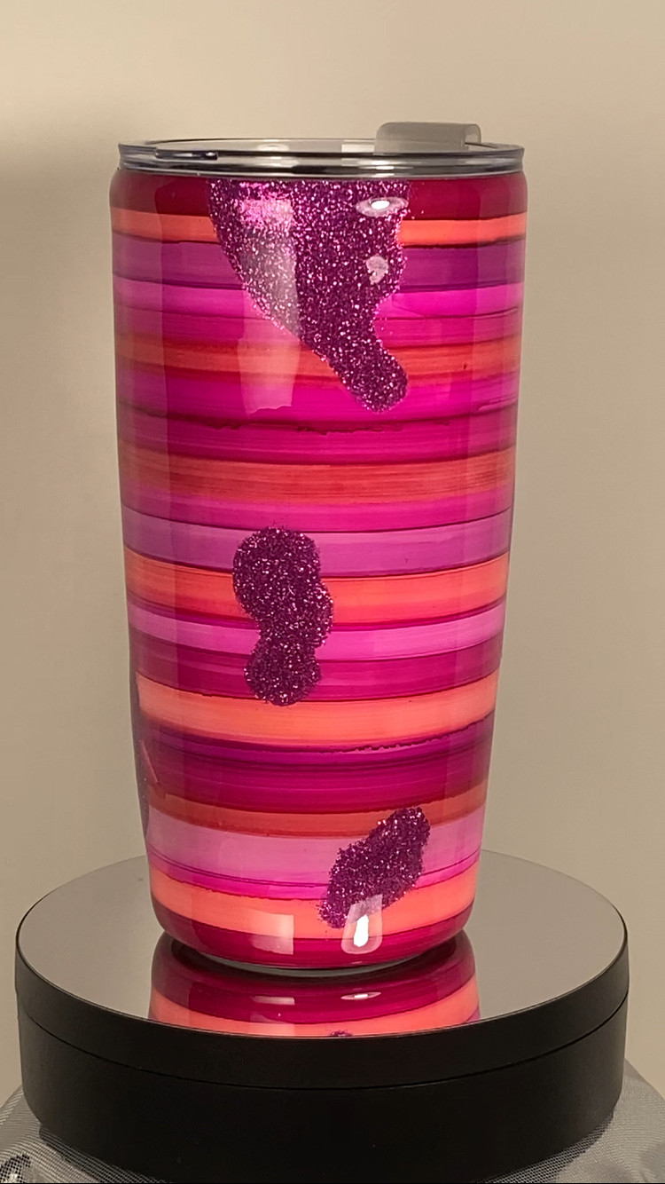 Pink Stripe w/Glitter 20 oz. Tumbler w/lid