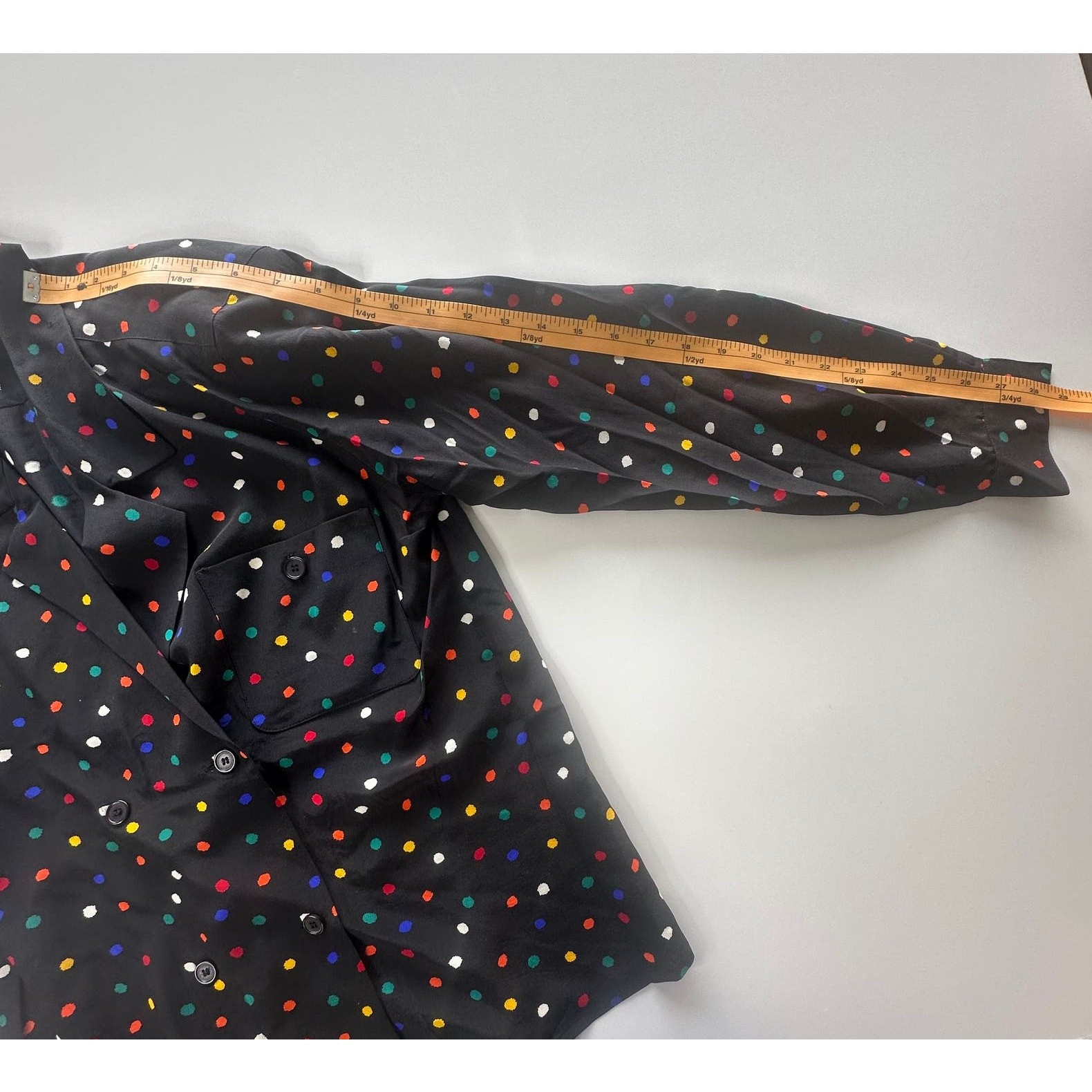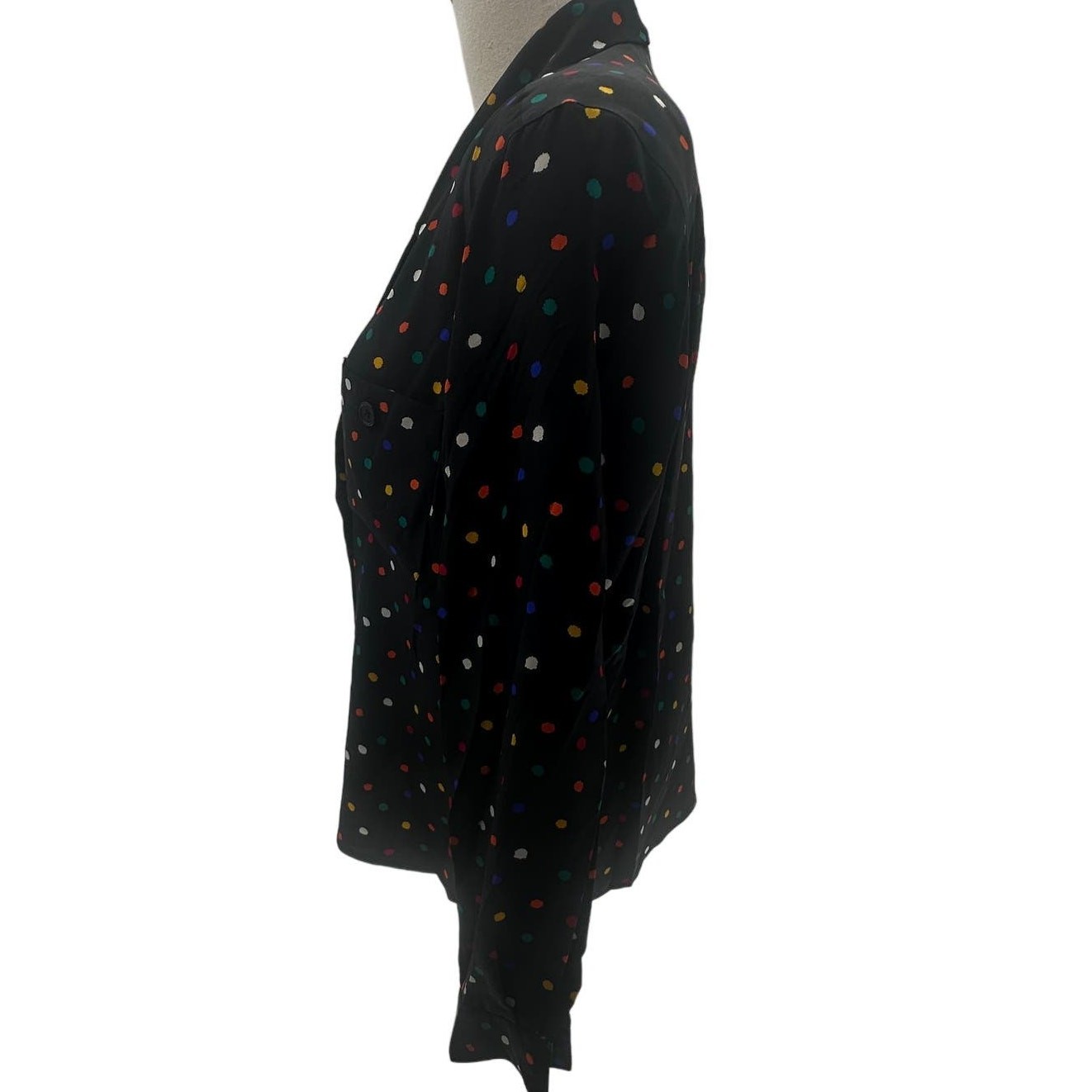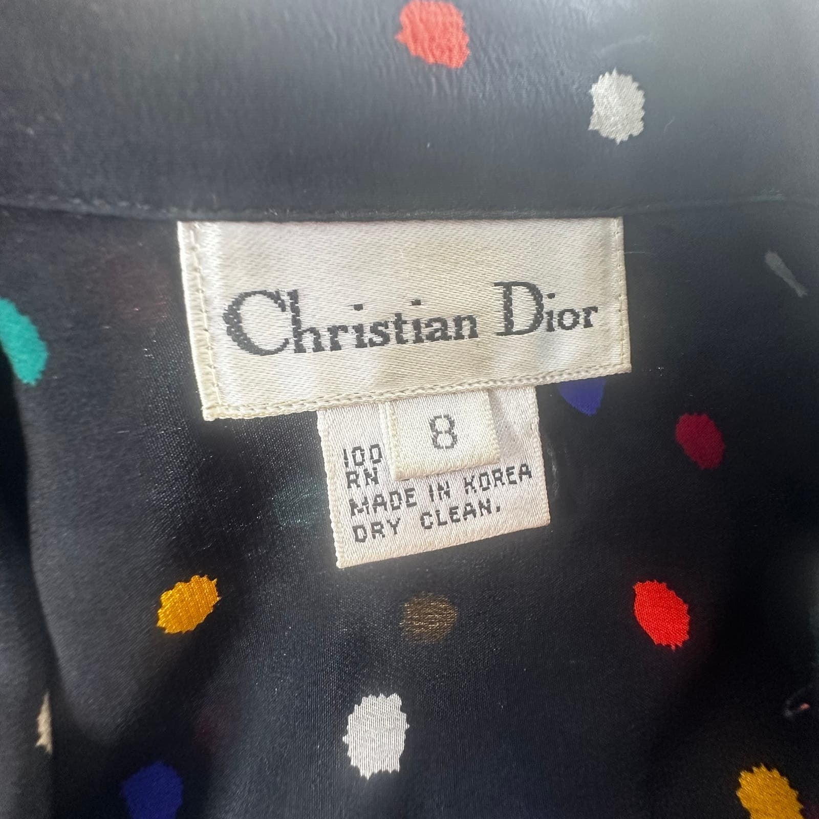 как выглядит VNTG Christian Dior Black/Color Polkadot Long Sleeve Silk Double Breast Blouse-8 фото