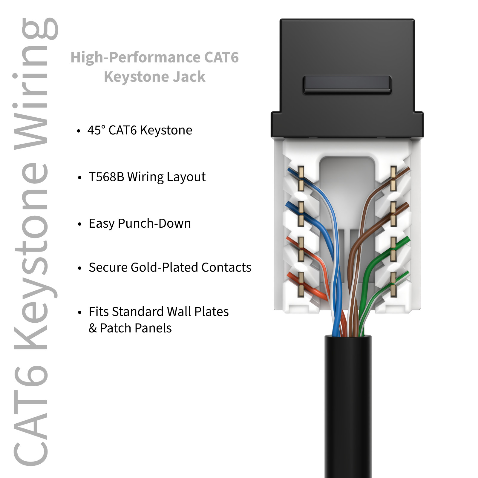 10 Pack Cat6 45 Angled Keystone Jack RJ45 110 Punchdown 8P8C Black Ethernet