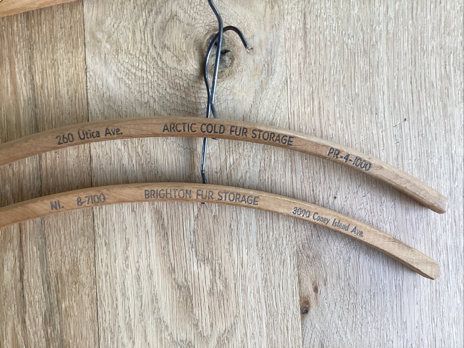 как выглядит Vintage 5 Pc Wood Pants Jacket Hangers NY Fur Storage Cleaners Brooklyn Old фото