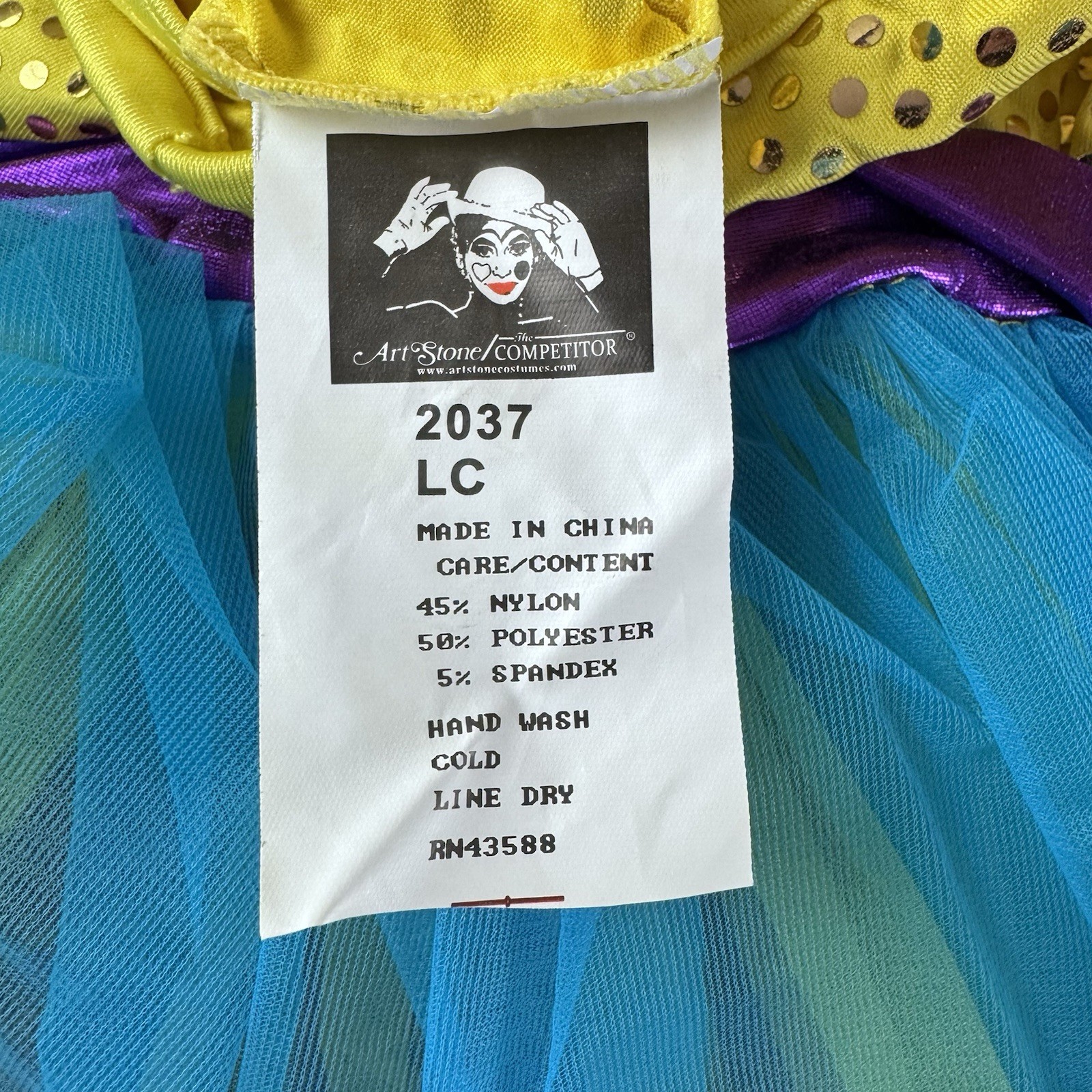 как выглядит Art Stone Lets Have a Party Yellow/Blue/Purple Dance Costume Size Large Child фото