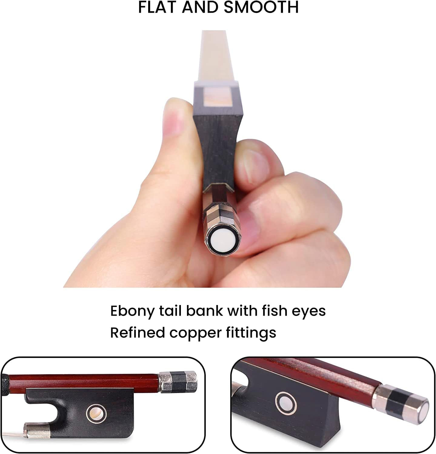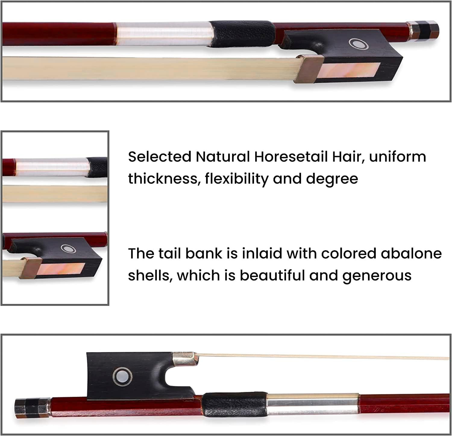 4/4 Full Size Student Violin Bow, Well Balanced Handmade Brazilwood Bow with Hor