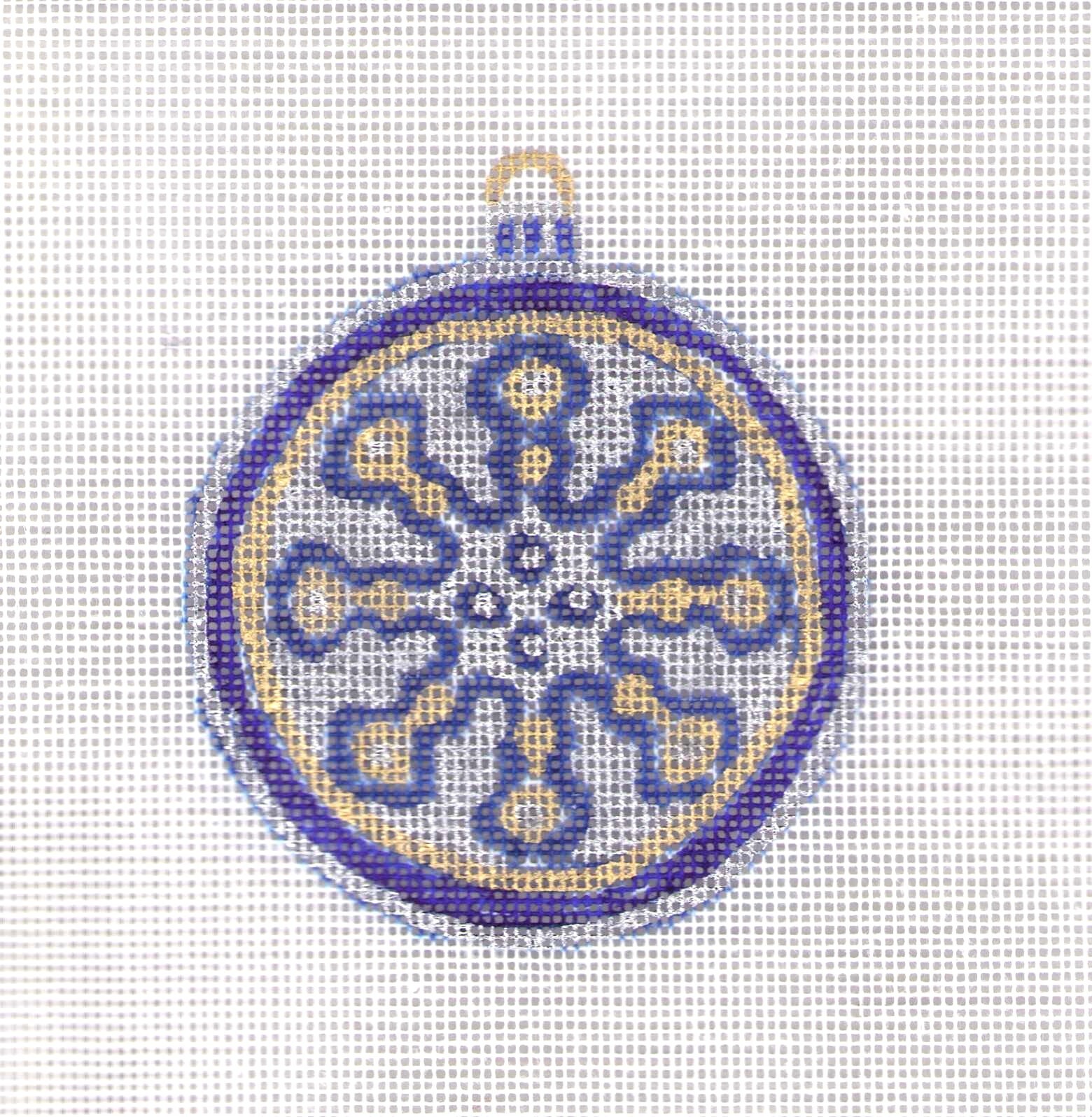 Vintage Glass Ornament Christmas Needlepoint Canvas Hand Painted 18 mesh signed