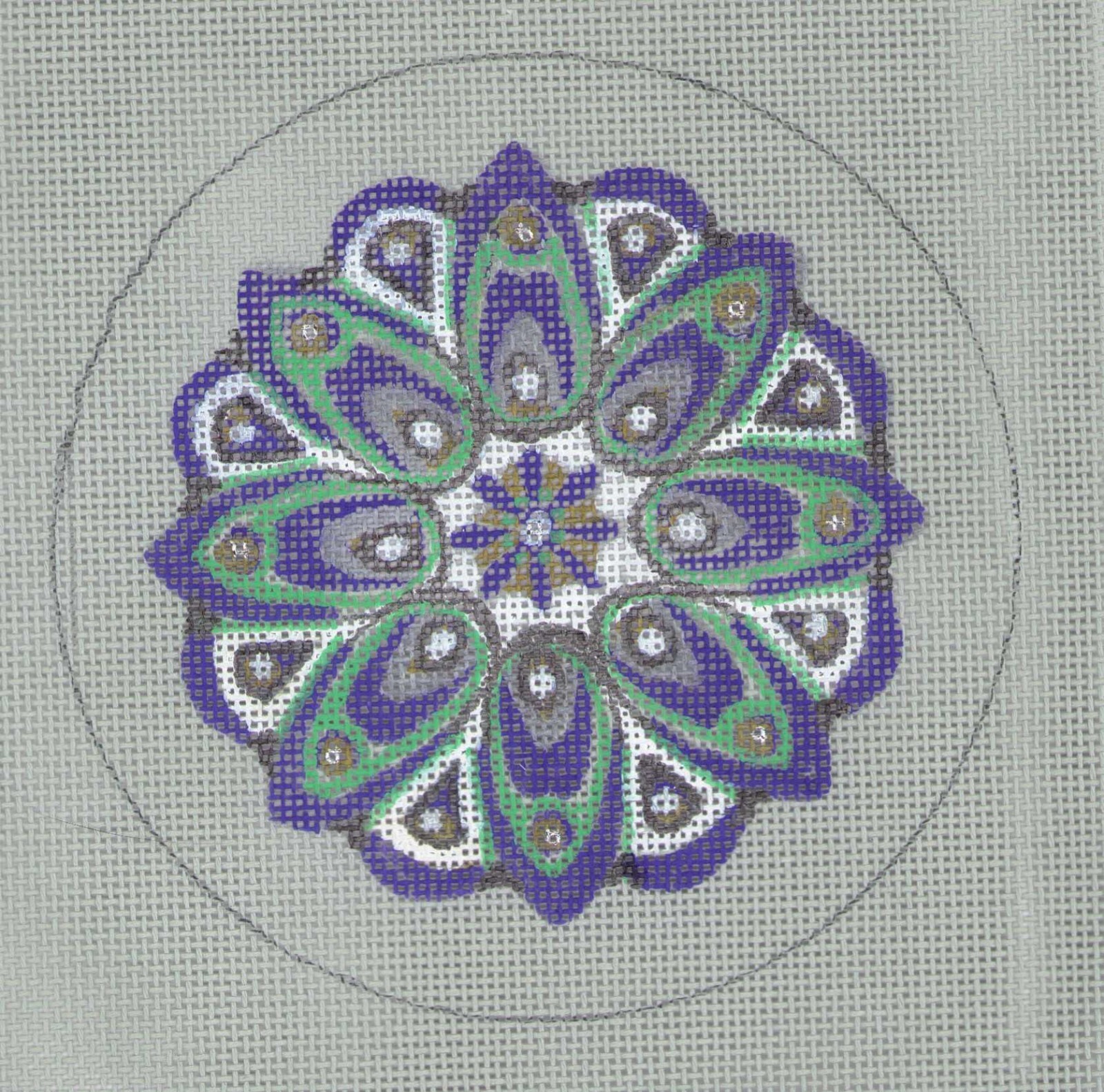Vintage Glass Ornament Christmas Needlepoint Canvas Hand Painted 18 mesh signed