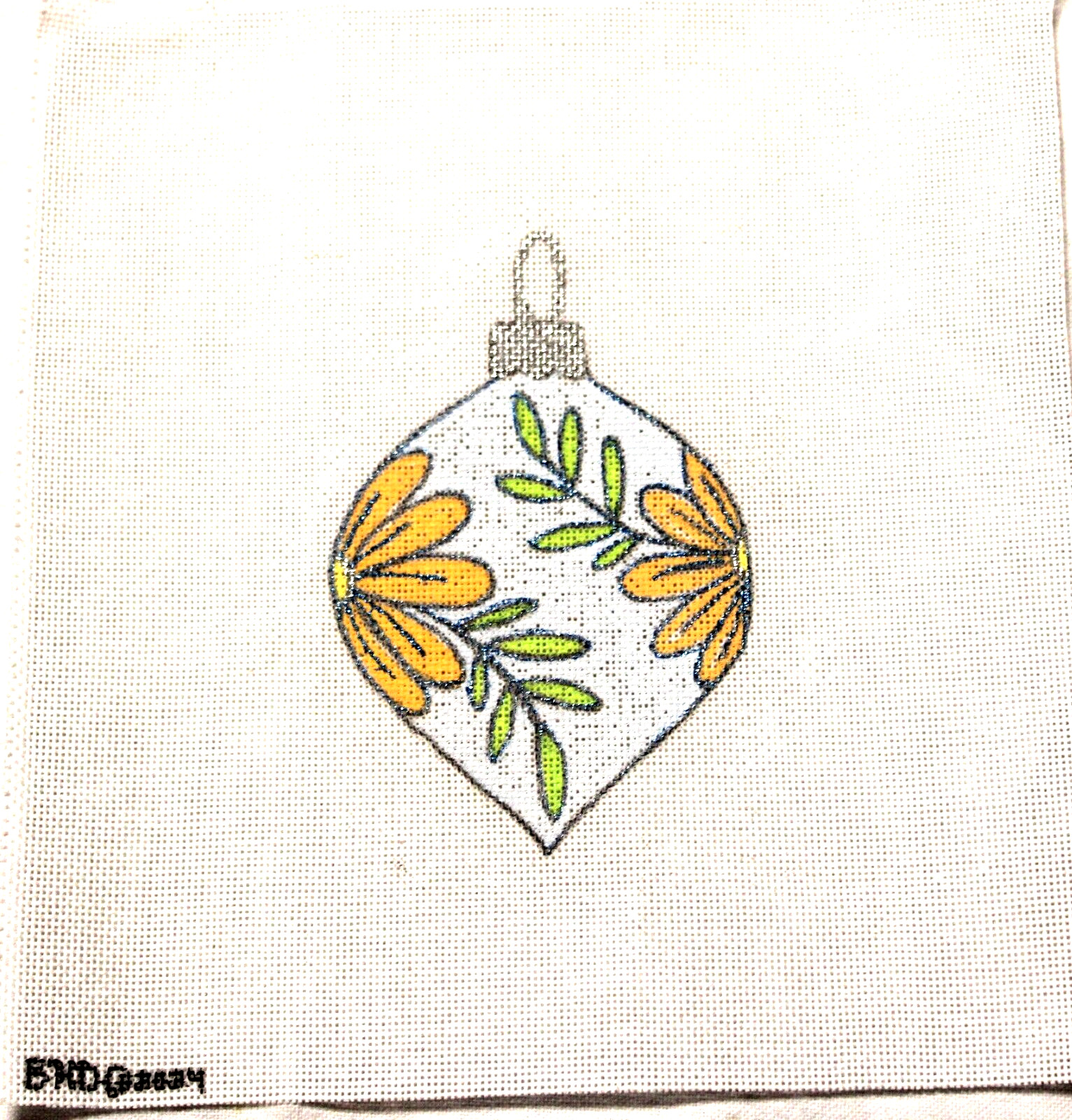 Vintage Glass Ornament Christmas Needlepoint Canvas Hand Painted 18 mesh signed