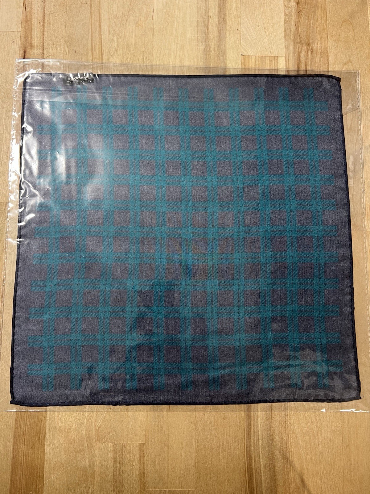 как выглядит New Indochino Navy and Teal Plaid 100 Silk Pocket Square фото