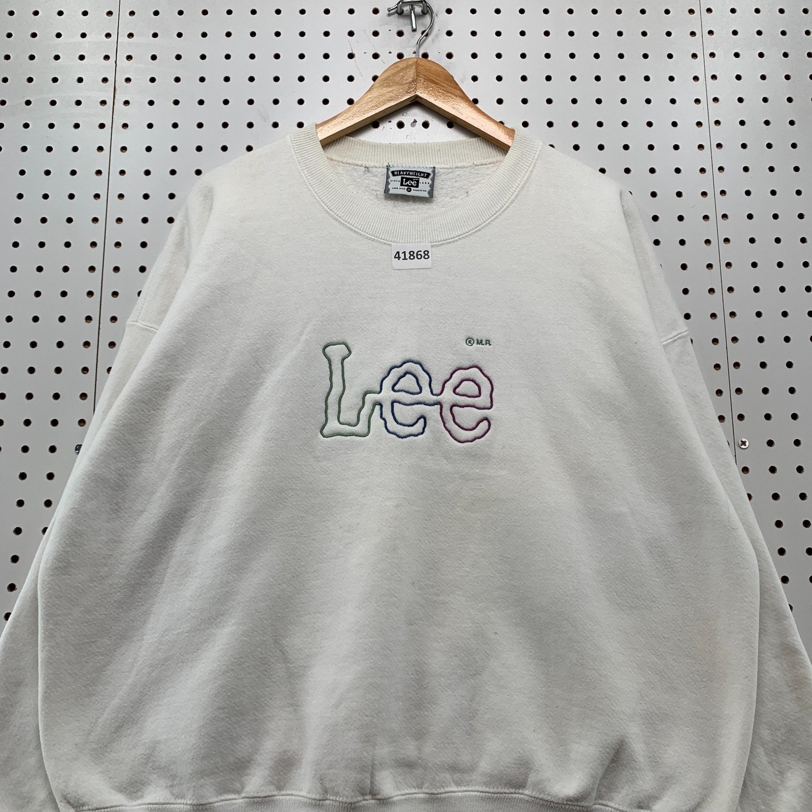 Vintage 90s LEE Crewneck Sweatshirt XL White Embroidered Spellout USA 26x25.5