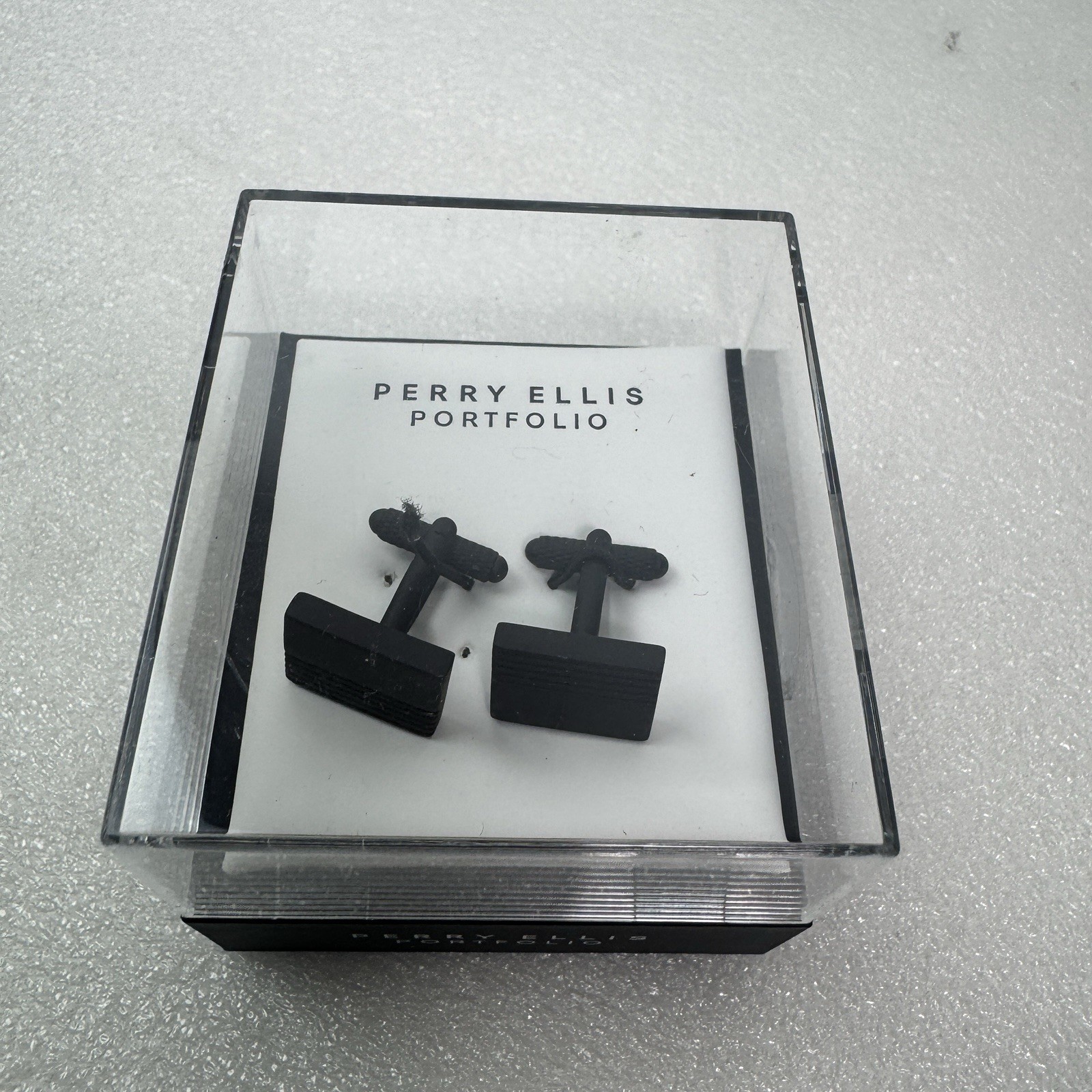 как выглядит Perry Ellis Black Coated Cuff Links фото