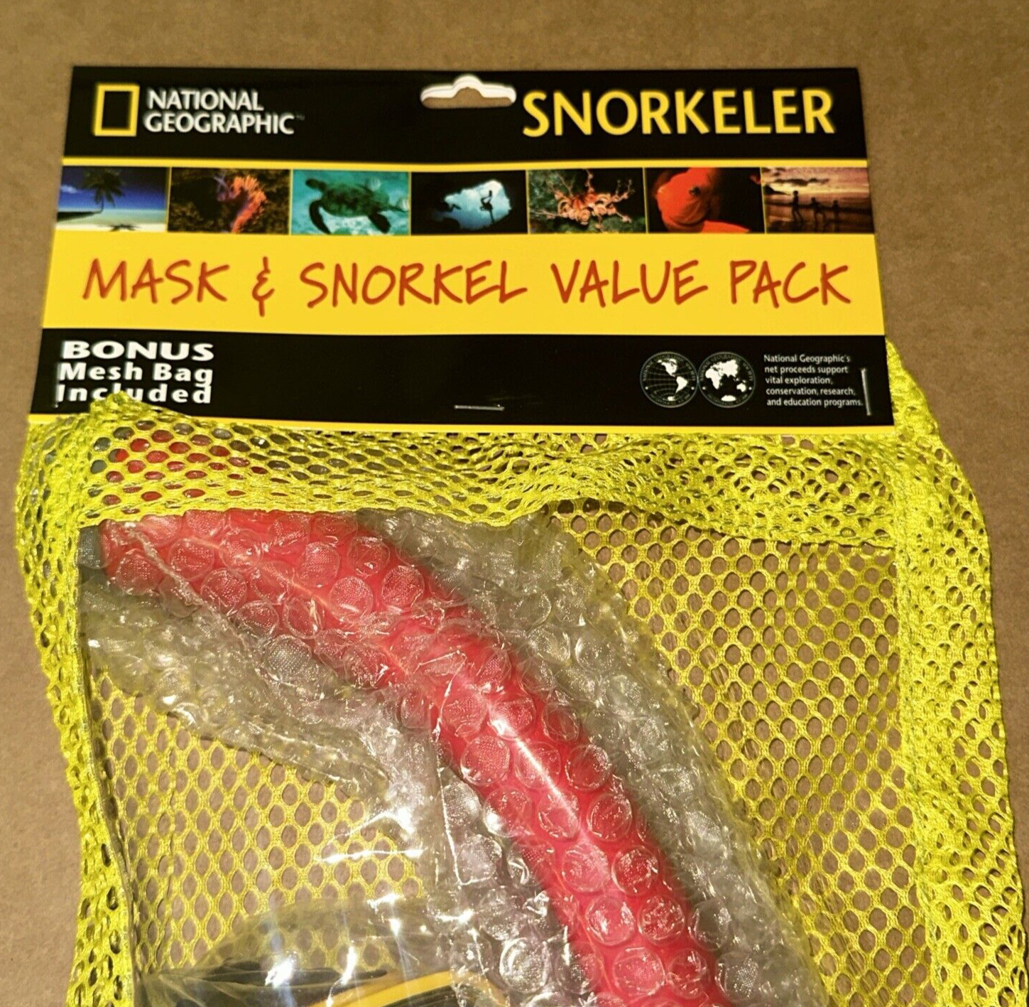 National Geographic Mask Snorkel Set Snorkeler Value Pack Include Mesh Bag NEW