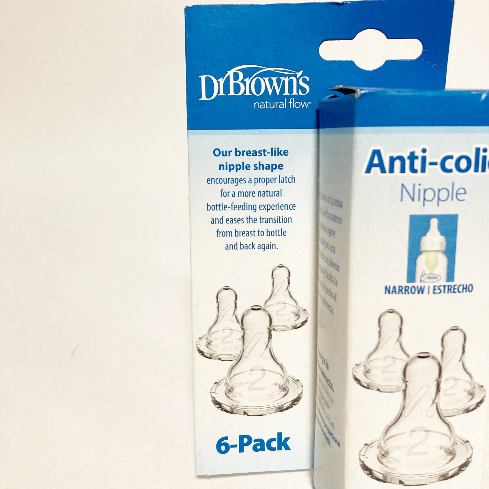 Dr. Brown's 6 Pk Natural Flow Anti-Colic Nipple Level 2 Medium Flow 3m NEW