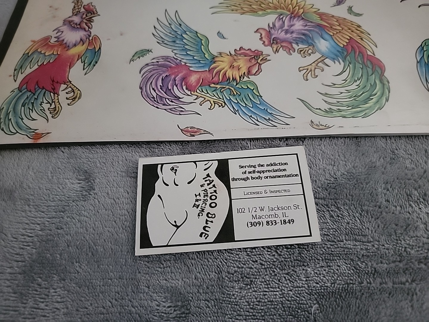 Vintage Official Tattoo Brand Flash Art 11x14 Tattoo Blue Macomb IL ROOSTER