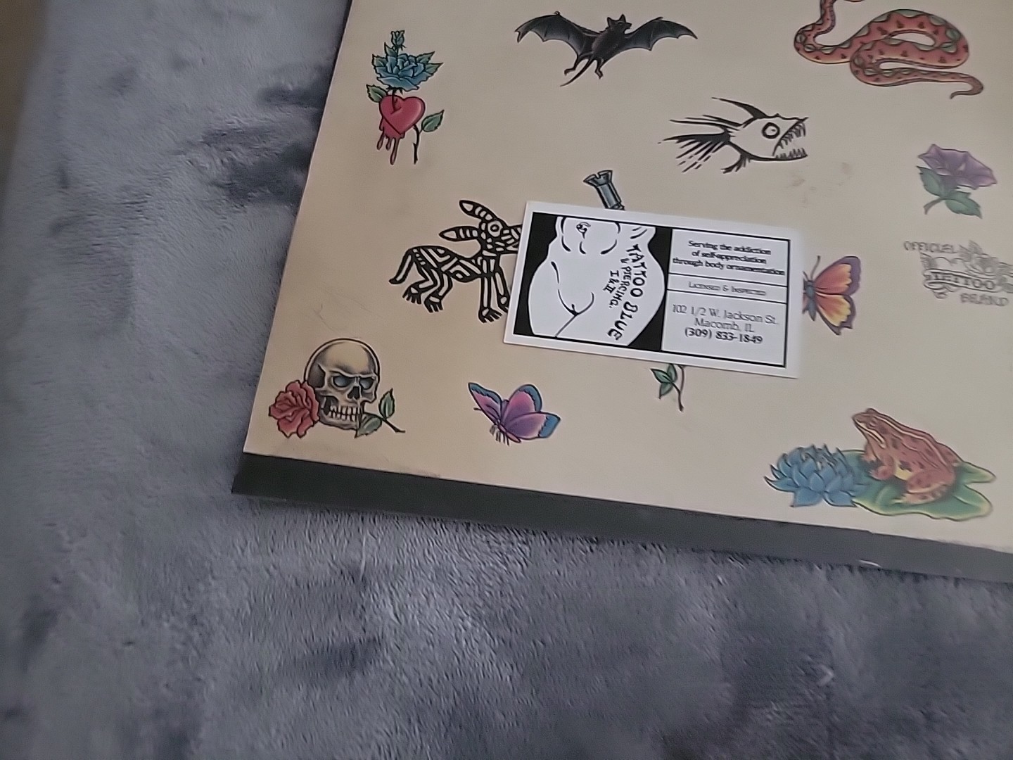 Vintage Official Tattoo Brand Flash Art 11x14 Tattoo Blue Macomb IL ANIMALS