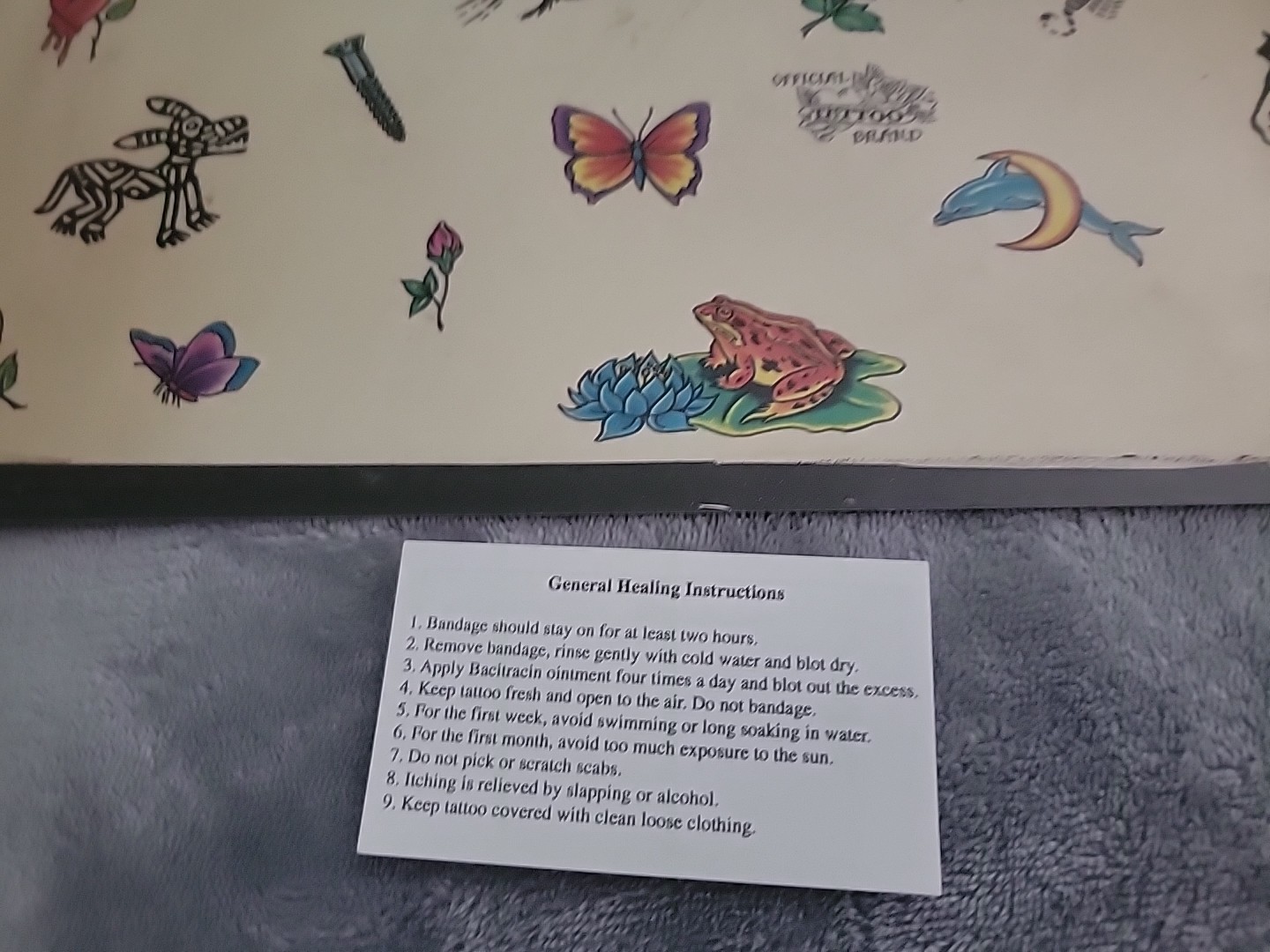 как выглядит Vintage Official Tattoo Brand Flash Art 11"x14" Tattoo Blue Macomb IL ANIMALS фото