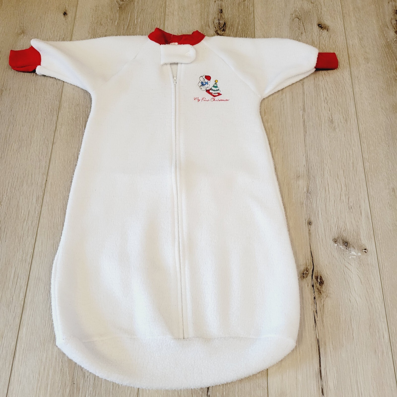 Vtg Infant Carters White Red My First Christmas Teddy Bear Green Tree Sleeper