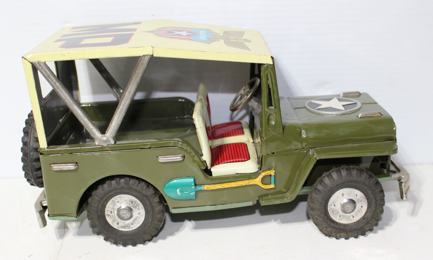 как выглядит Vintage Tin Metal Friction Military Police Toy Jeep 11" x 6" x 5" Japan фото