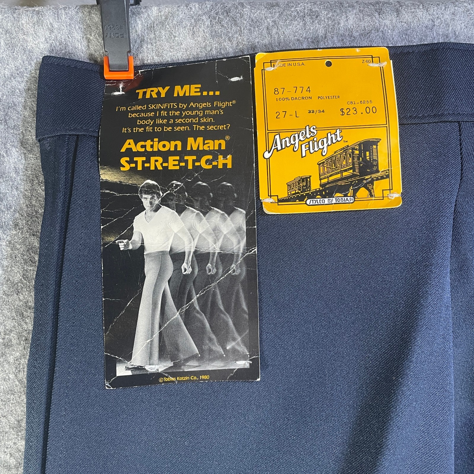 Vintage 70s Angels Flight Tobias Kotzin Blue Suit Disco Dress Pants 27x34 USA