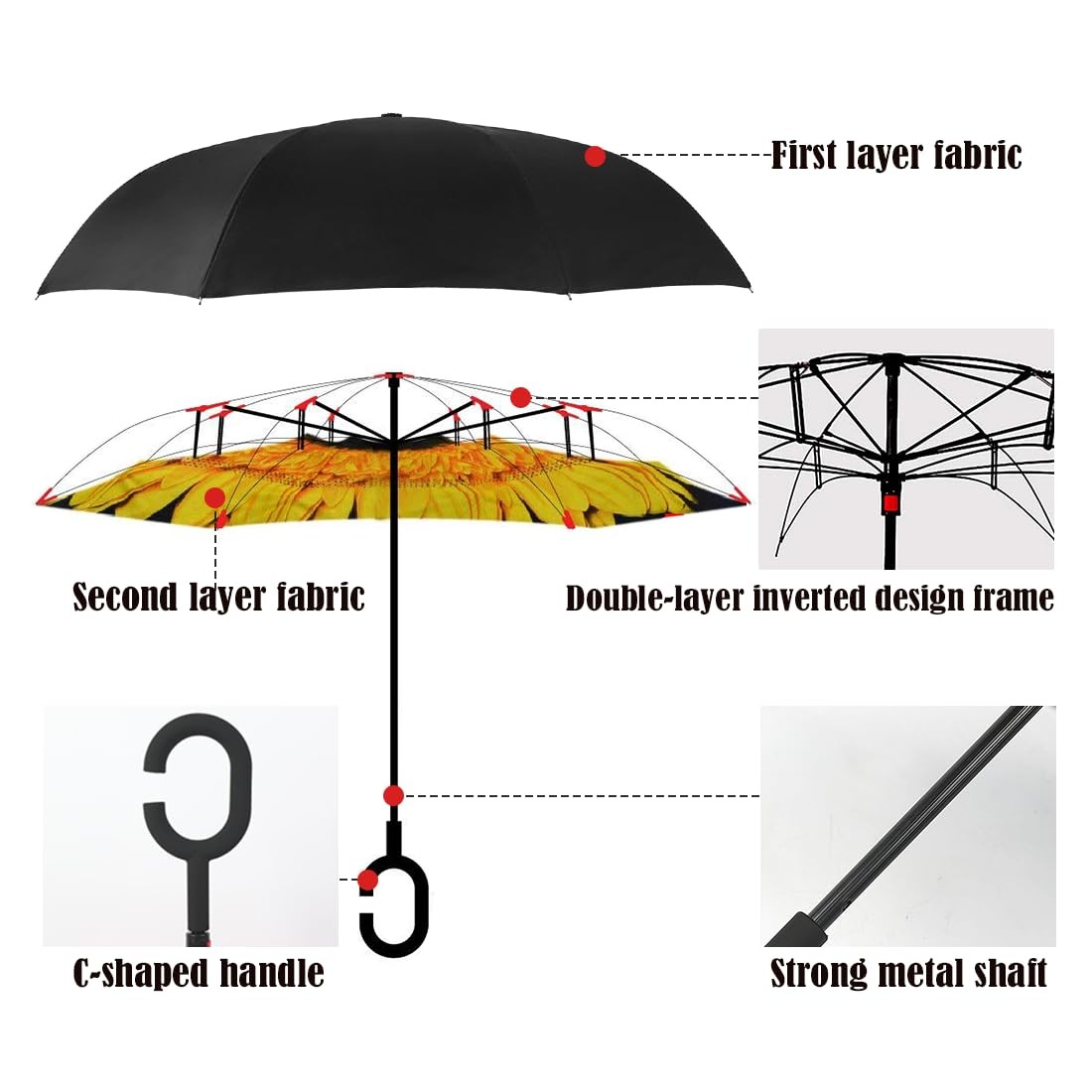 Inverted Umbrella, Windproof Reverse Umbrellas for Rain with Reversible Insid...