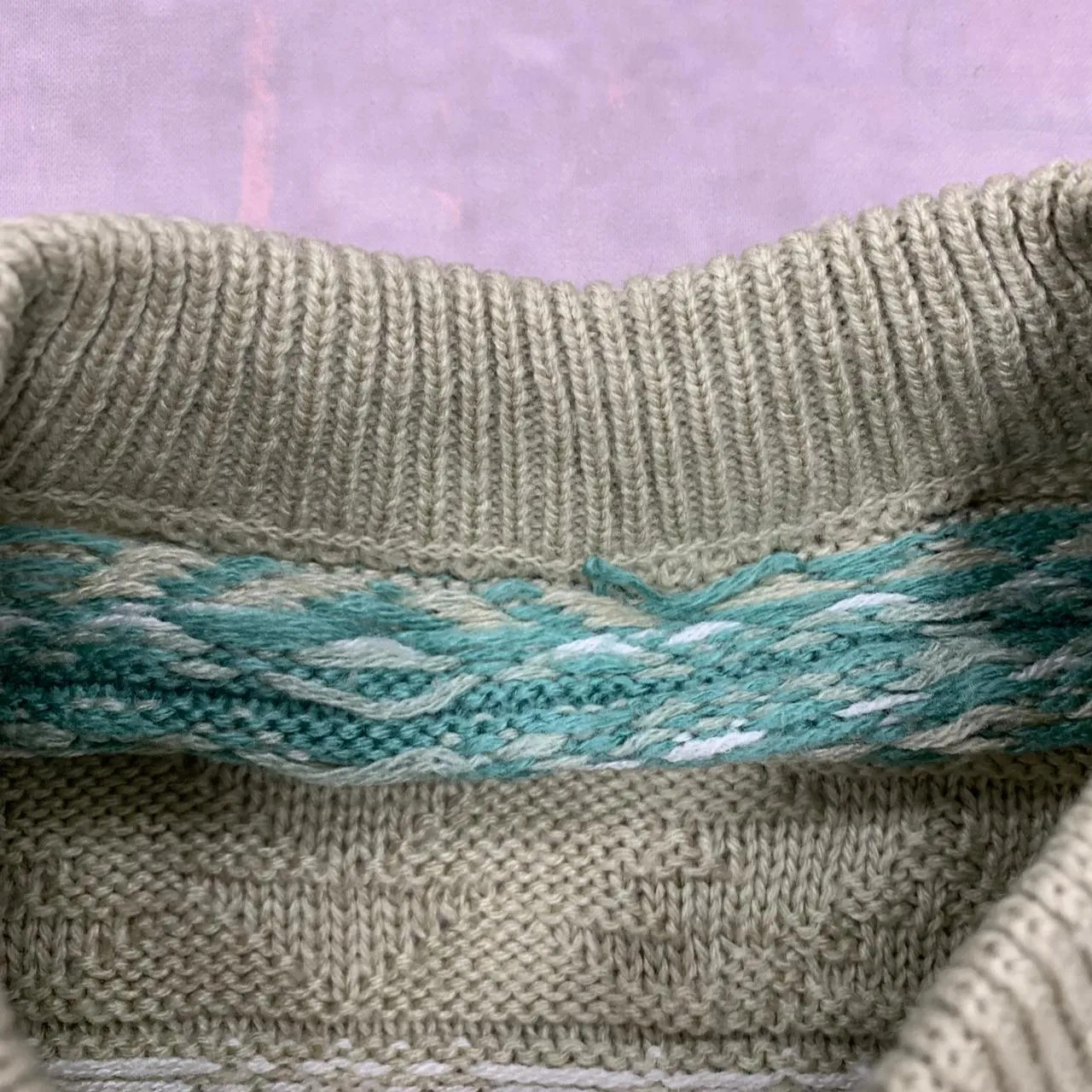 как выглядит Vintage Knitted Jumper abstract striped patterned grandad knit sweater Mens фото