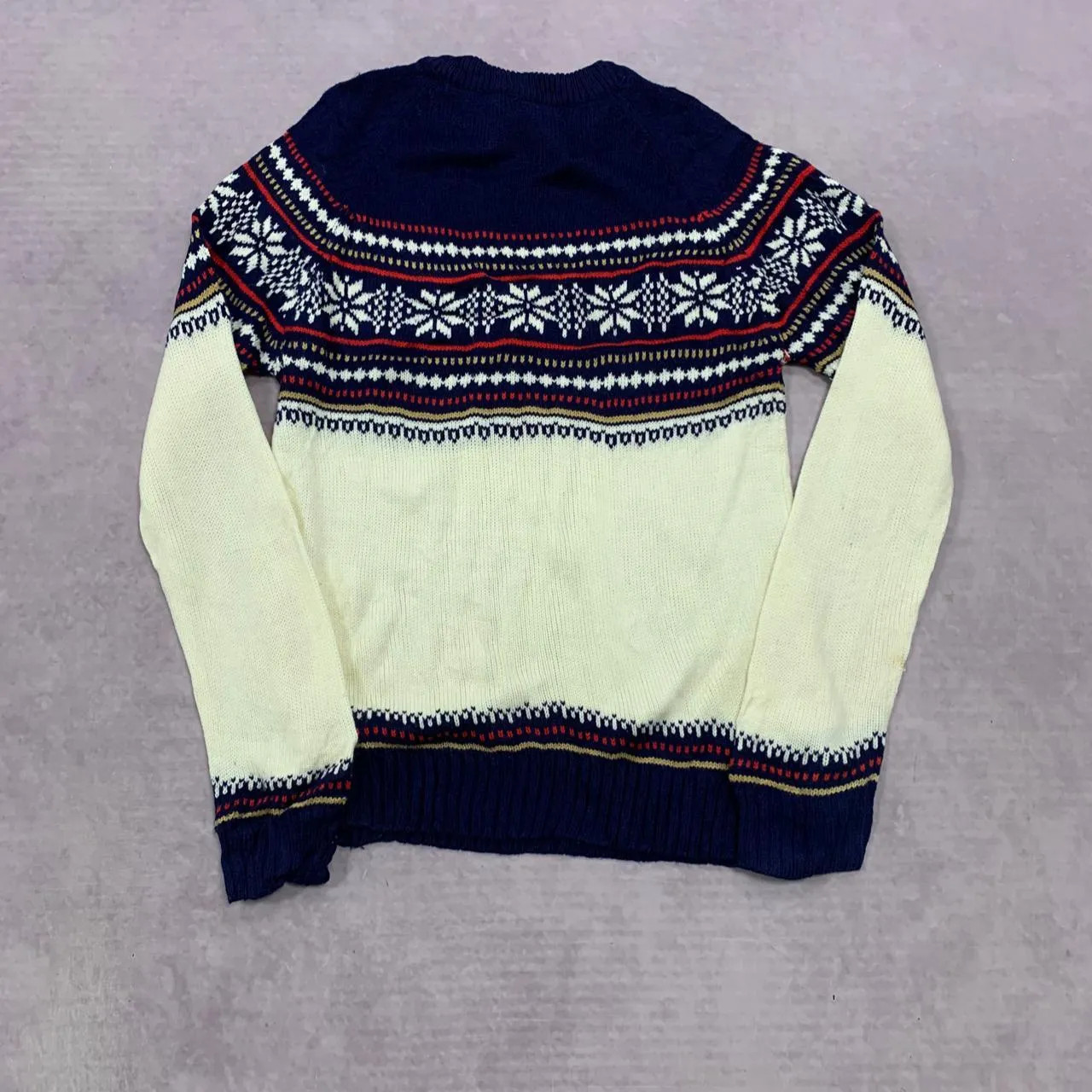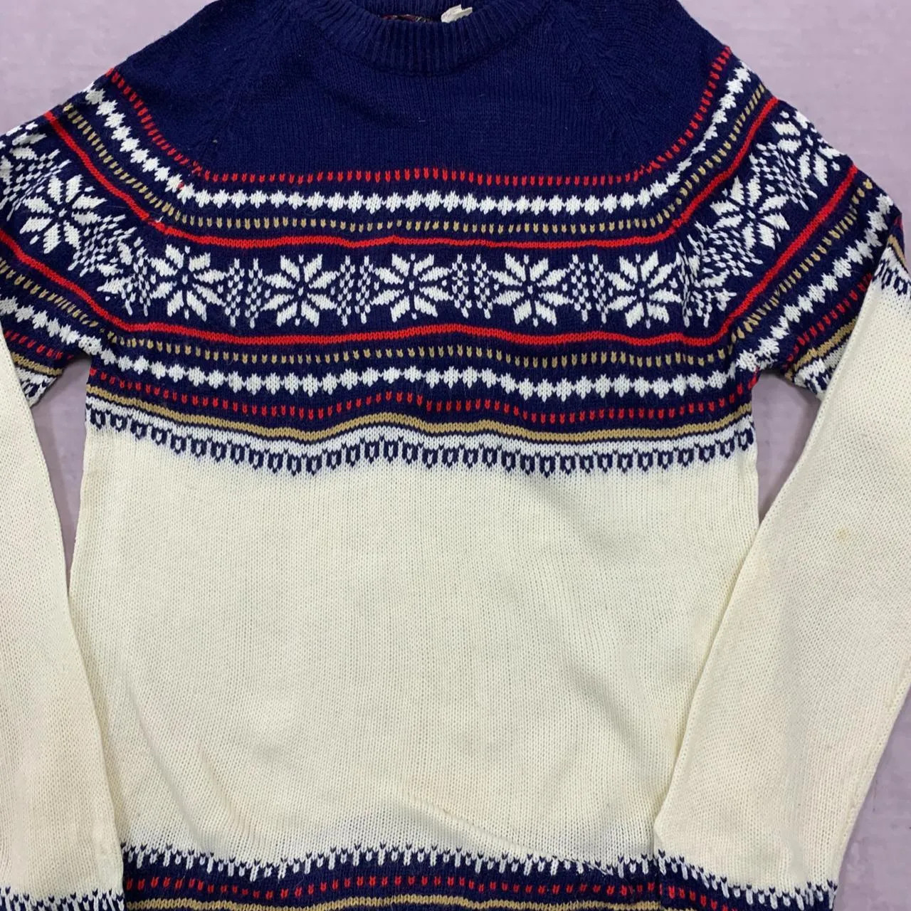 как выглядит Vintage Knitted Jumper abstract patterned knit sweater Women