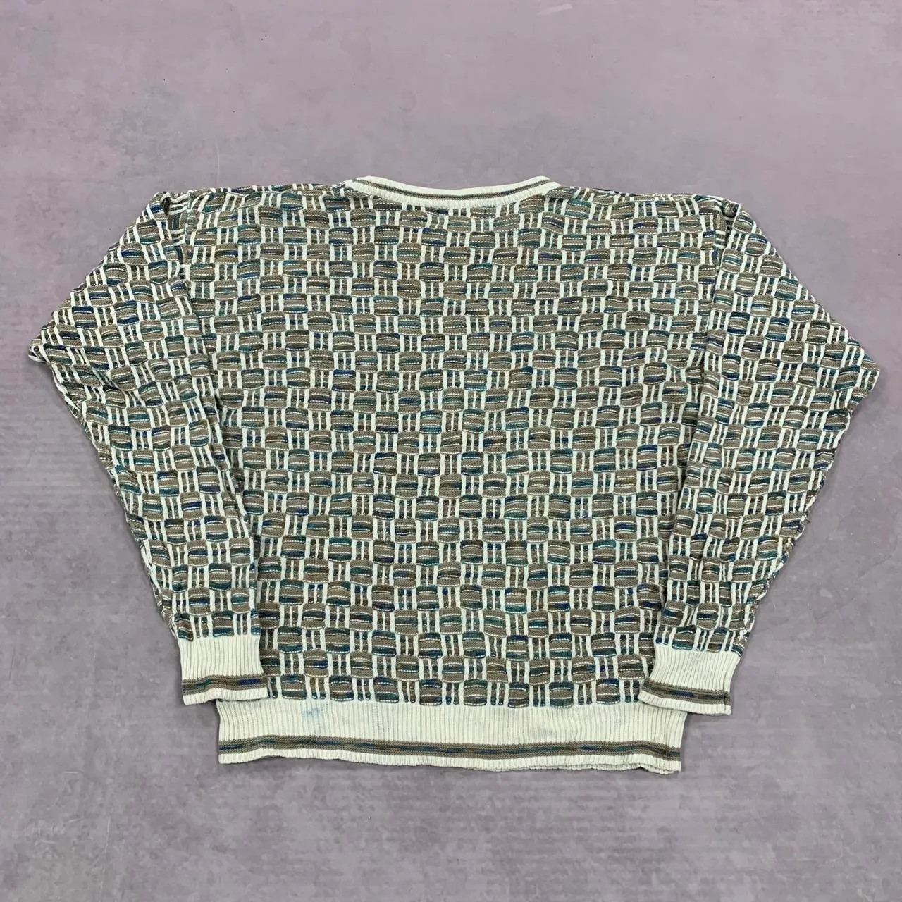 как выглядит Vintage Knitted Jumper Abstract Patterned Grandad Knit Sweater Men