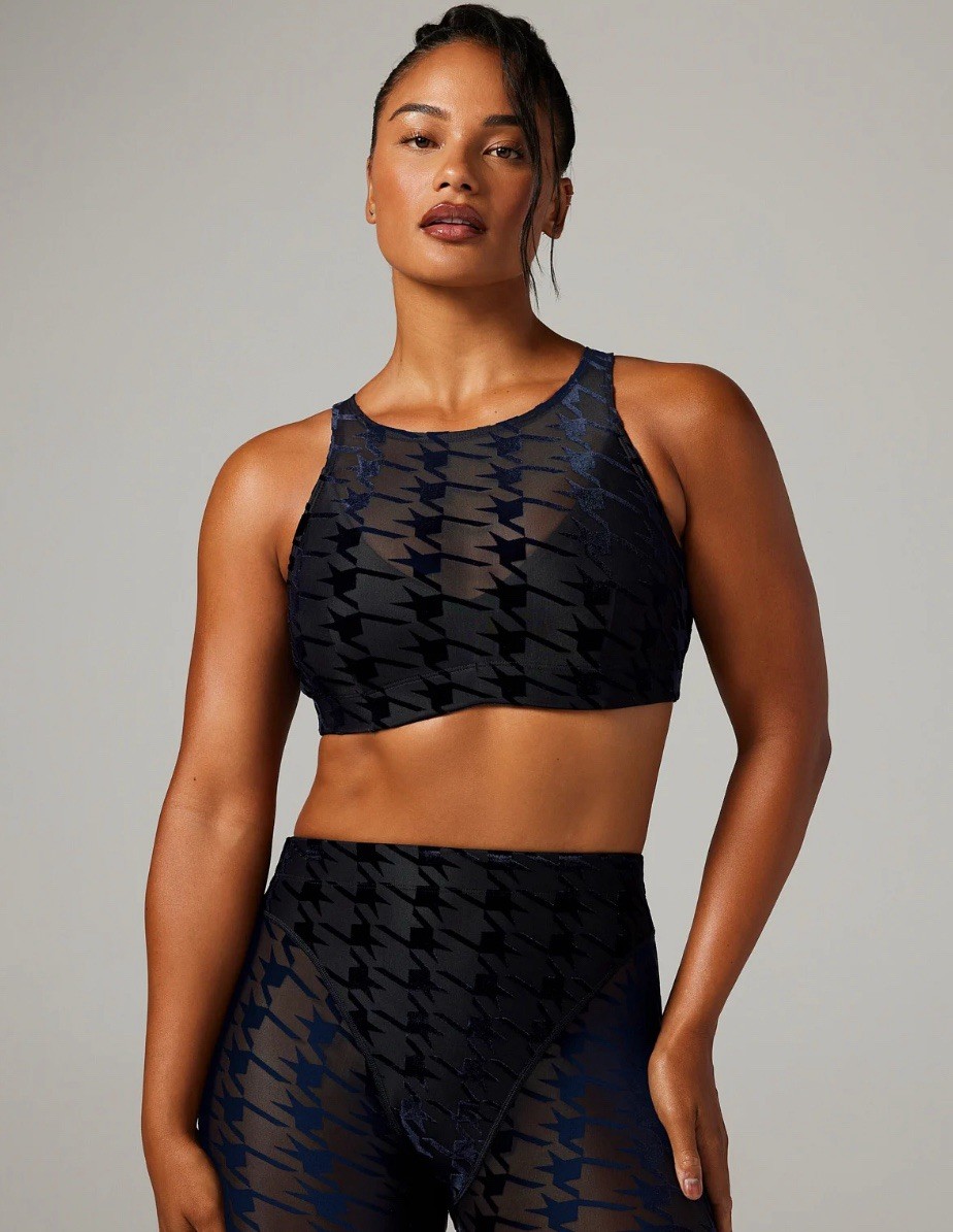 Savage X Fenty RISQUE TAKER HOUNDSTOOTH Inkwell Blue Sports Bra M Legging Sm