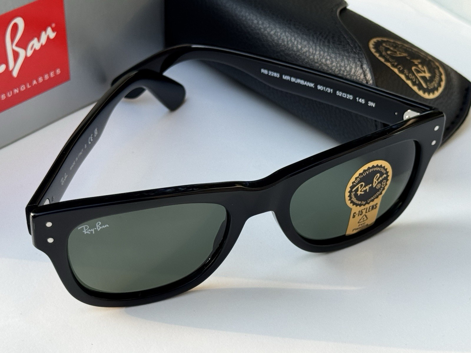 NEW Ray-Ban RB2283 901/31 BURBANK Polished Black G-15 Green Sunglasses 52mm