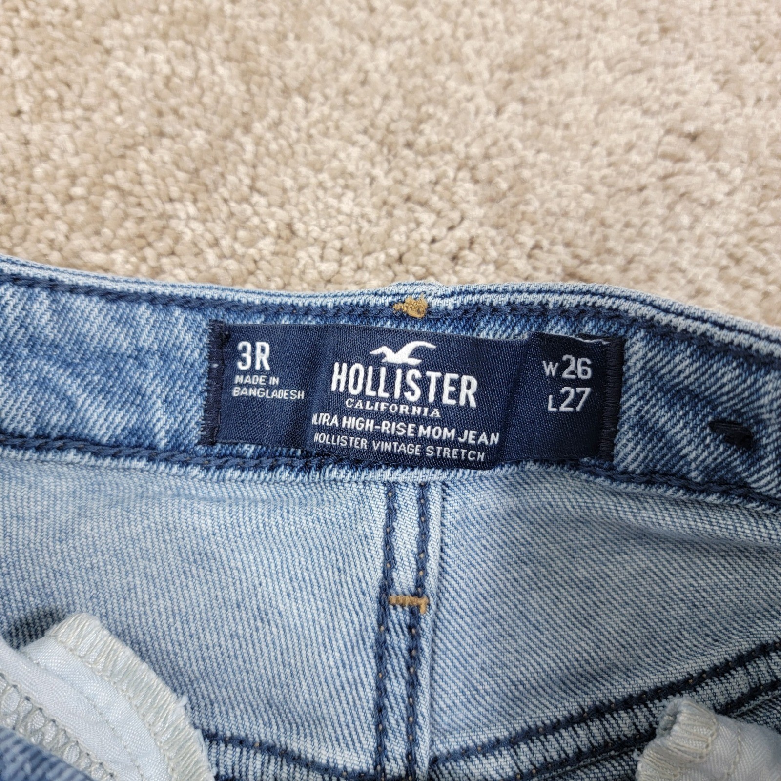 как выглядит Hollister Ultra High Rise Mom Jeans 3R W26 L27 Distressed Ripped Light Wash фото