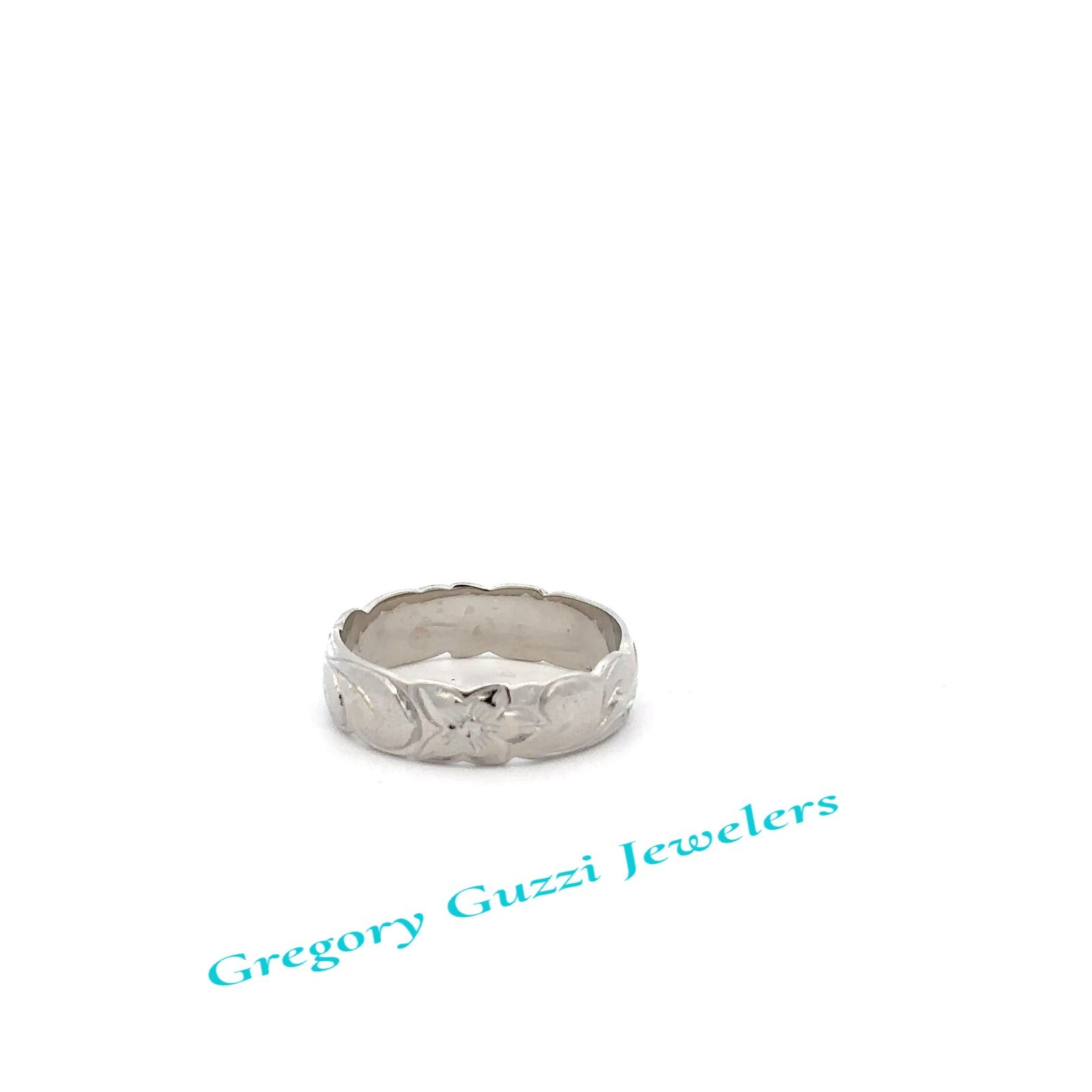 STERLING SILVER HAWAIIAN PLUMERIA FLOWER SCROLL 6MM BAND RING SIZE 10