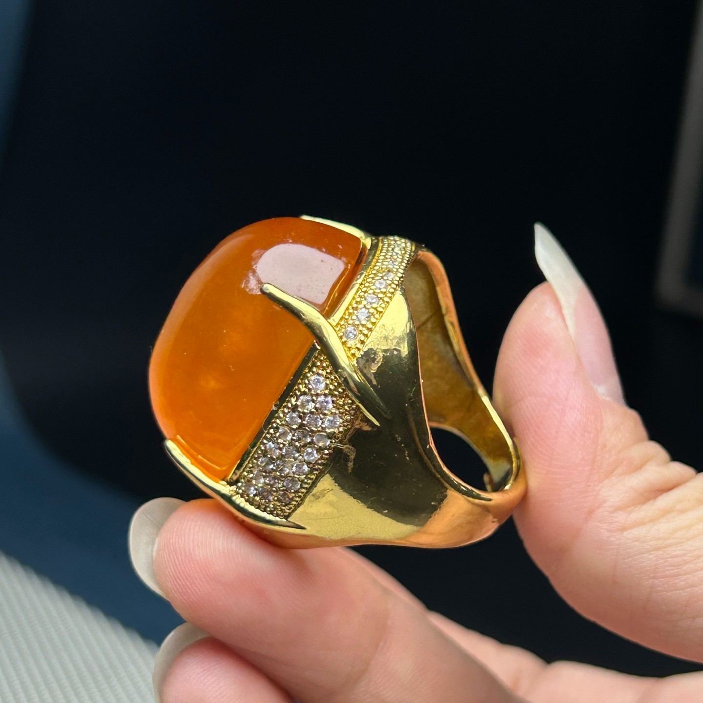 как выглядит Natural Icy Yellow Jade jadeite Pigeon Egg Shape Adjustable Size Ring фото