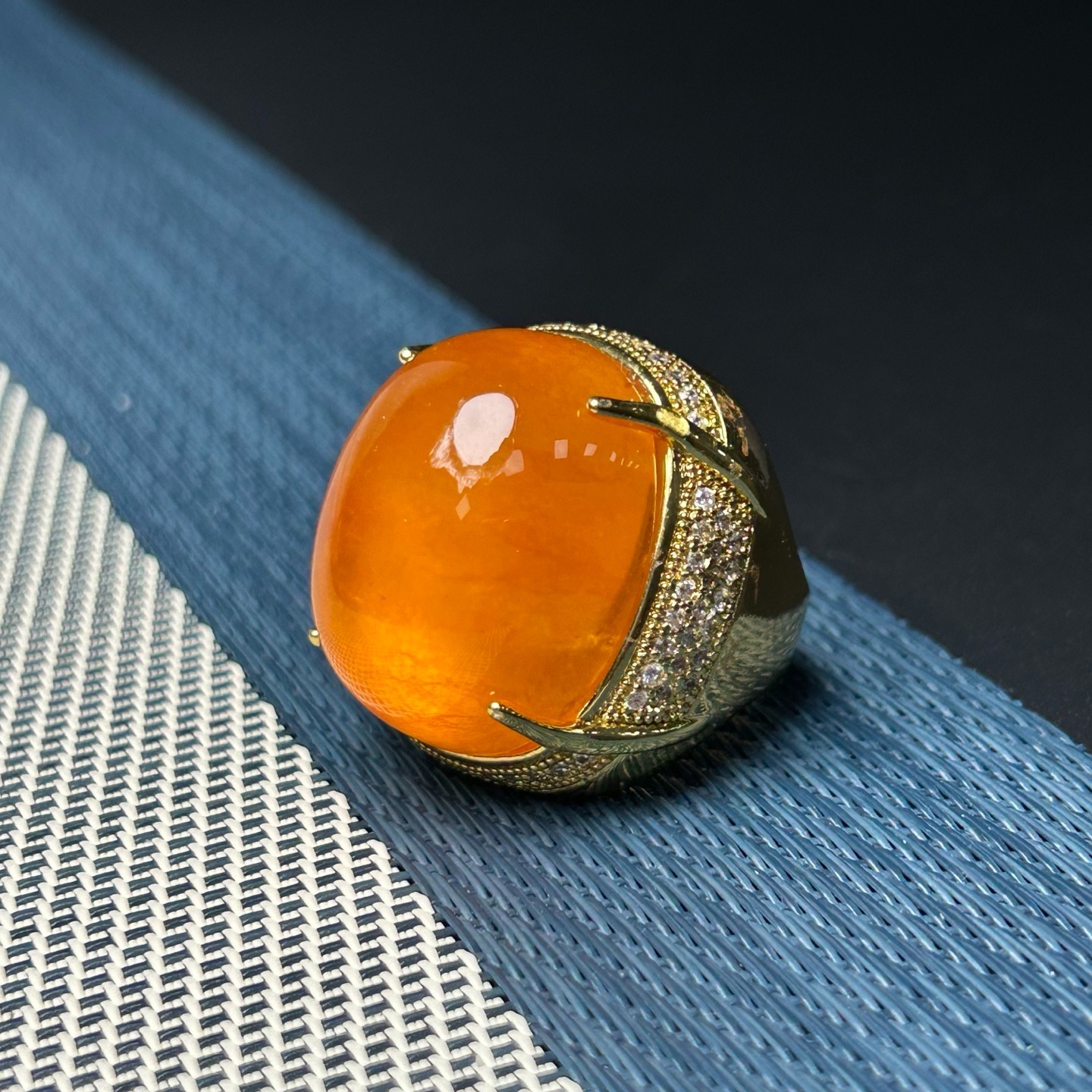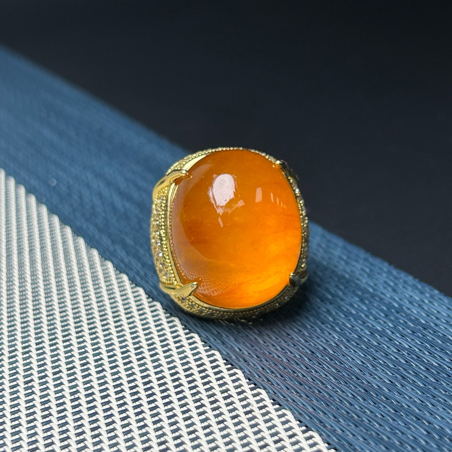 Natural Icy Yellow Jade jadeite Pigeon Egg Shape Adjustable Size Ring