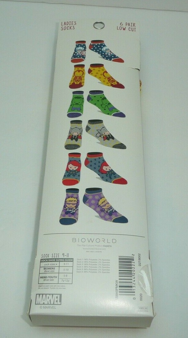 Avengers 6 Pairs Socks Low Cut Women's Ladies 9-11 Hawkeye Thor Black Widow Hulk