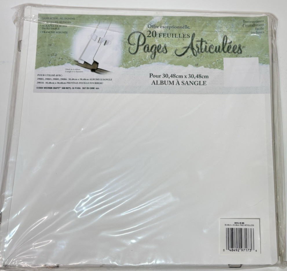Westrim 12x12 Scrapbook Album Refill Pages 20 Hinged Sheets Protectors New