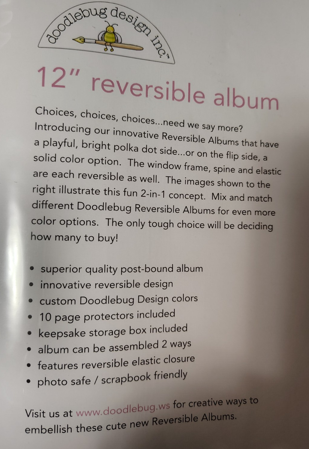 Scrapbook album by Doodlebug 12 x 12 Bright PINK NEW reversible