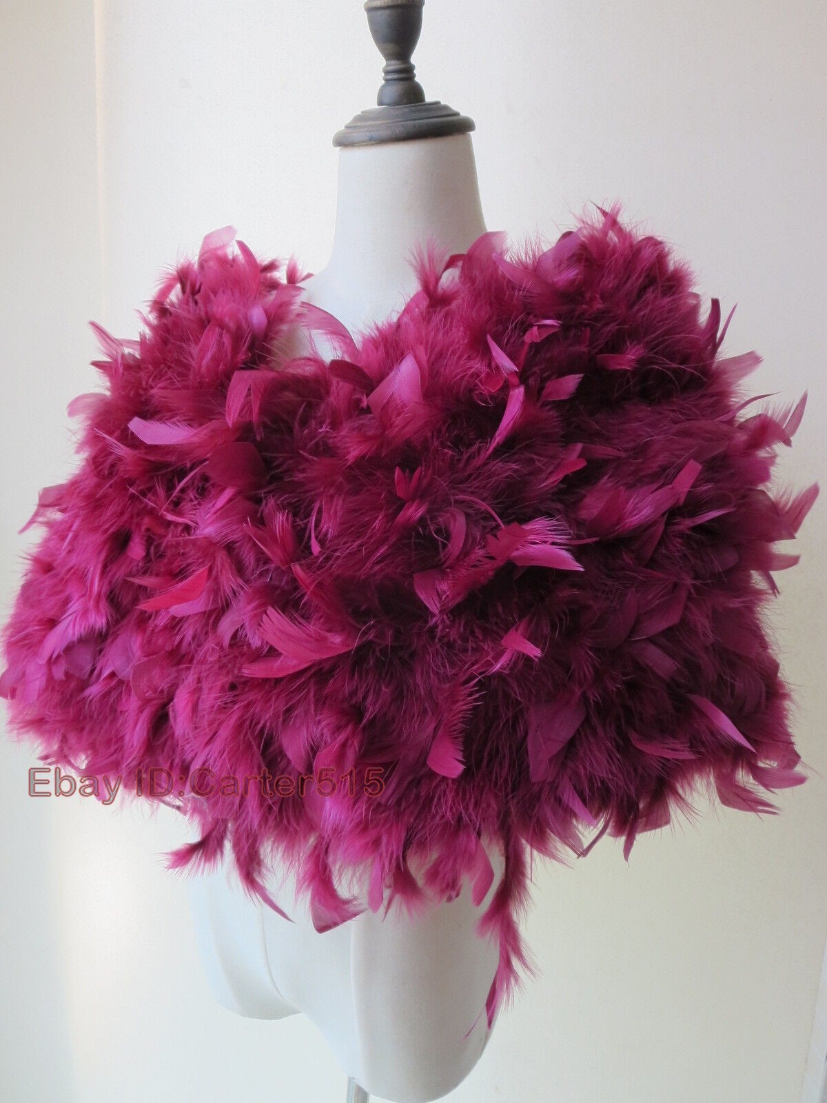 Real Ostrich Feather Fur Cape Shrug Bride Wedding Party Shawls Fluffy Purple