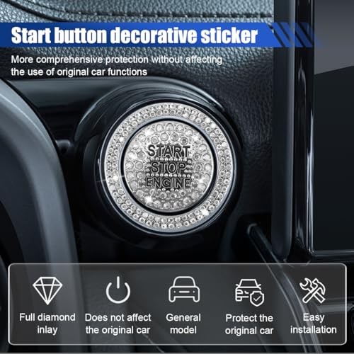 Bling Crystal Car Engine Start Ring Sticker, Sparkling Rhinestone Push White