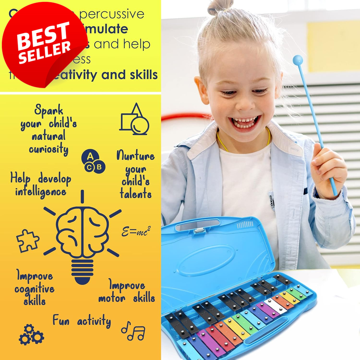 Glockenspiel Xylophone 25 Note Metal Keys Kids Percussion Music Toy Songbook US