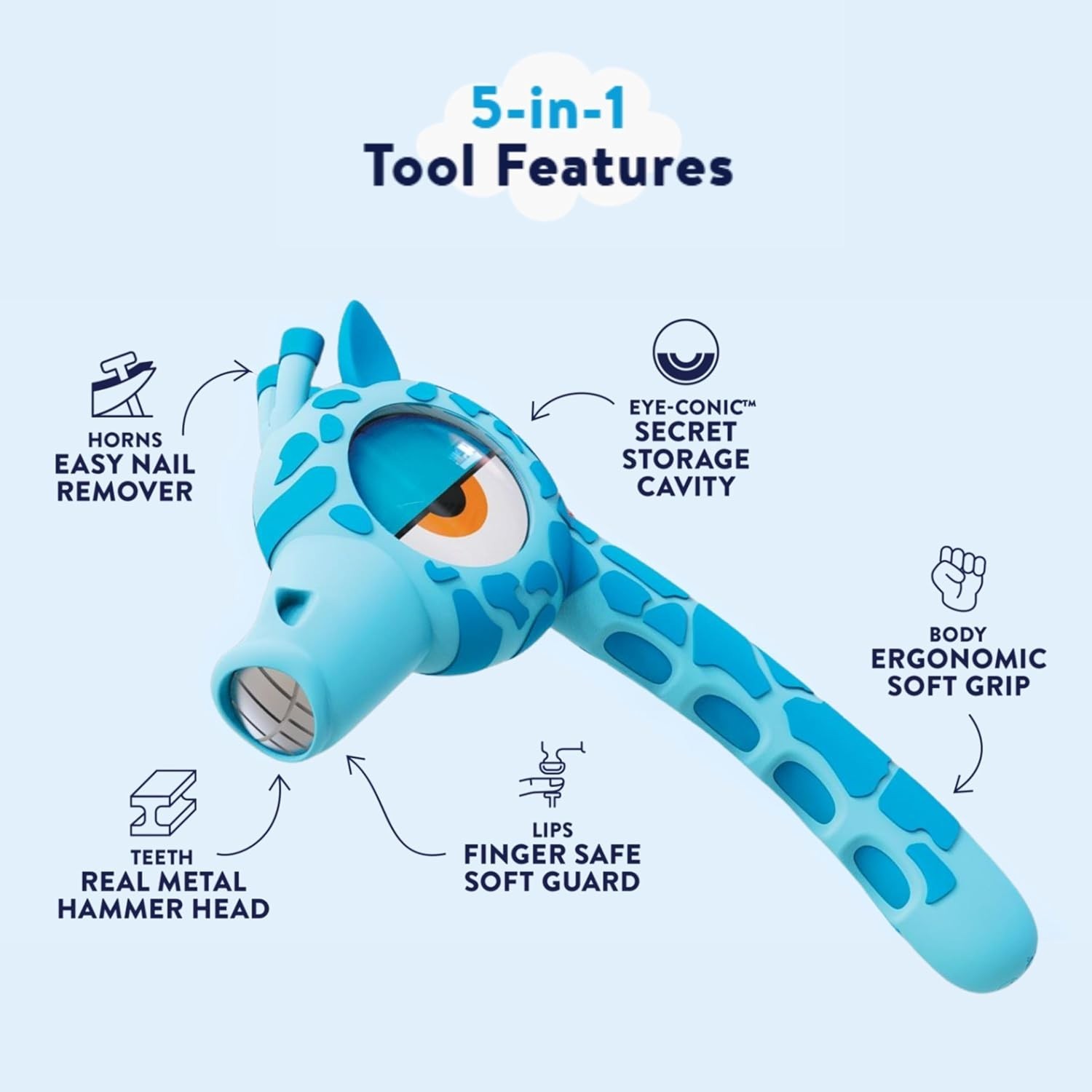 Real Metal Giraffe Hammer for Kids, Patented Safety Mouth Sleeve and Nail Remove