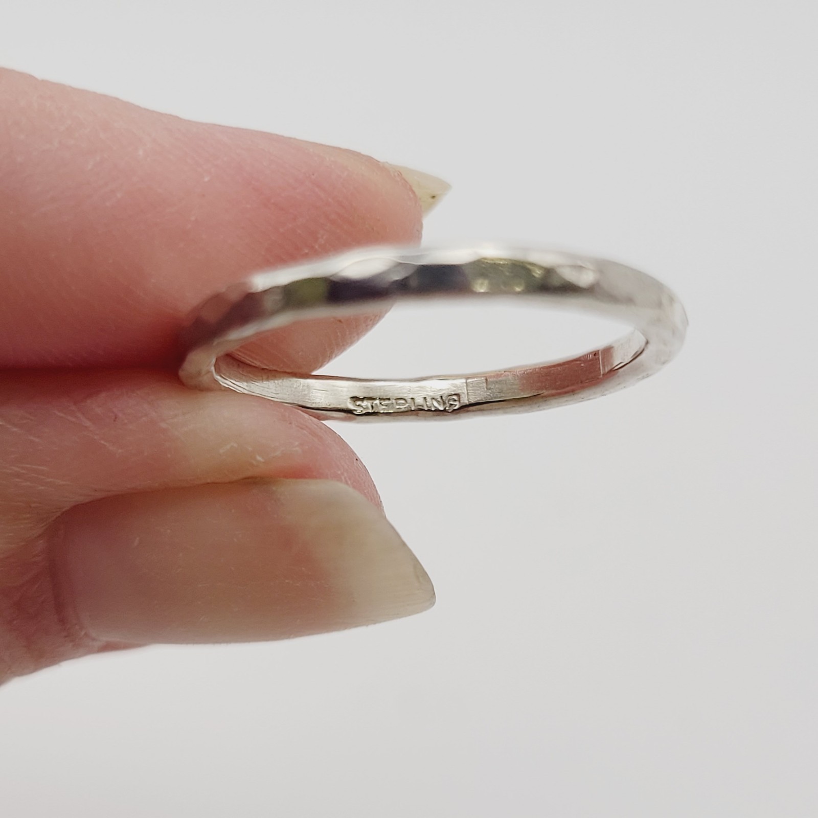 Vintage 925 Sterling Silver Hammered Etched Design Thin Stack Band Ring Sz 6.75