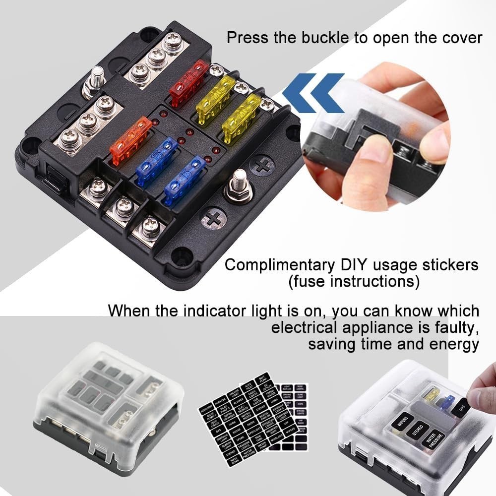 12-24V 6 Way Car Boot RV Power Distribution Blade Fuse Holder Box Block Panel