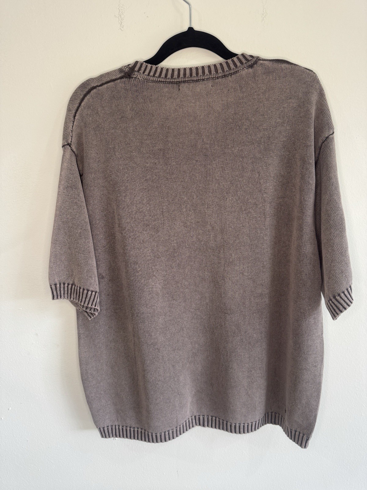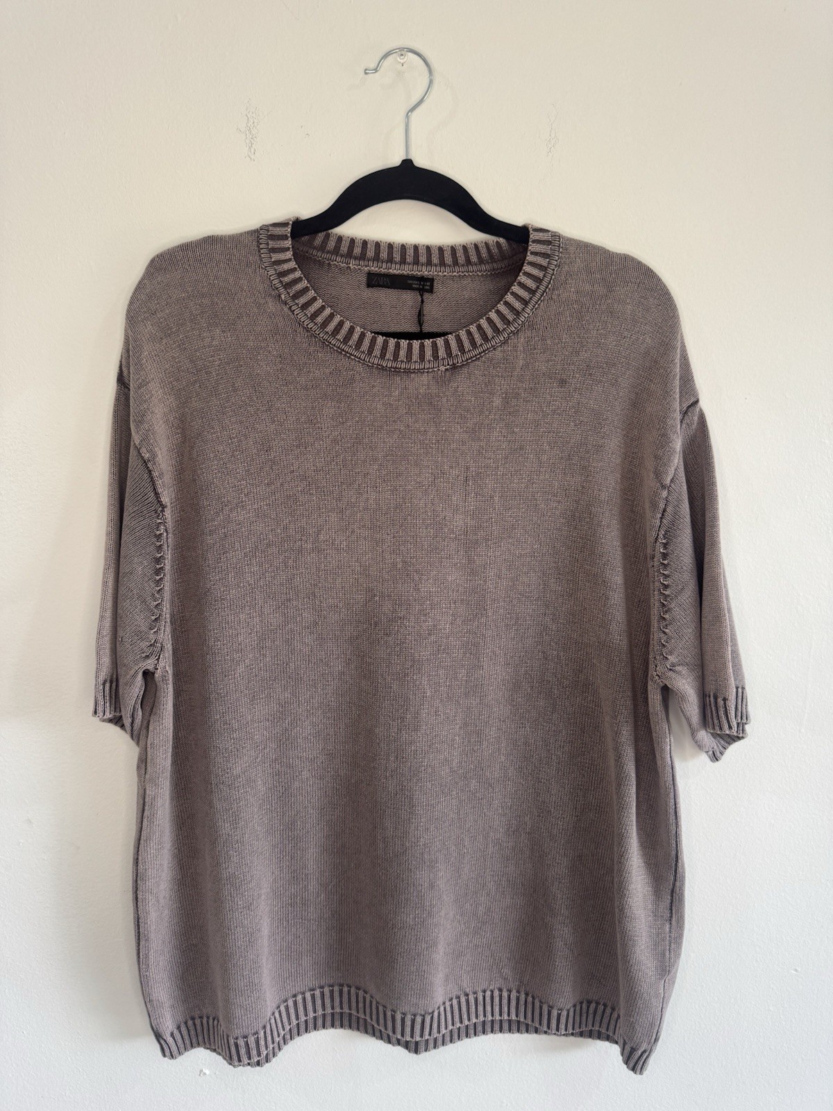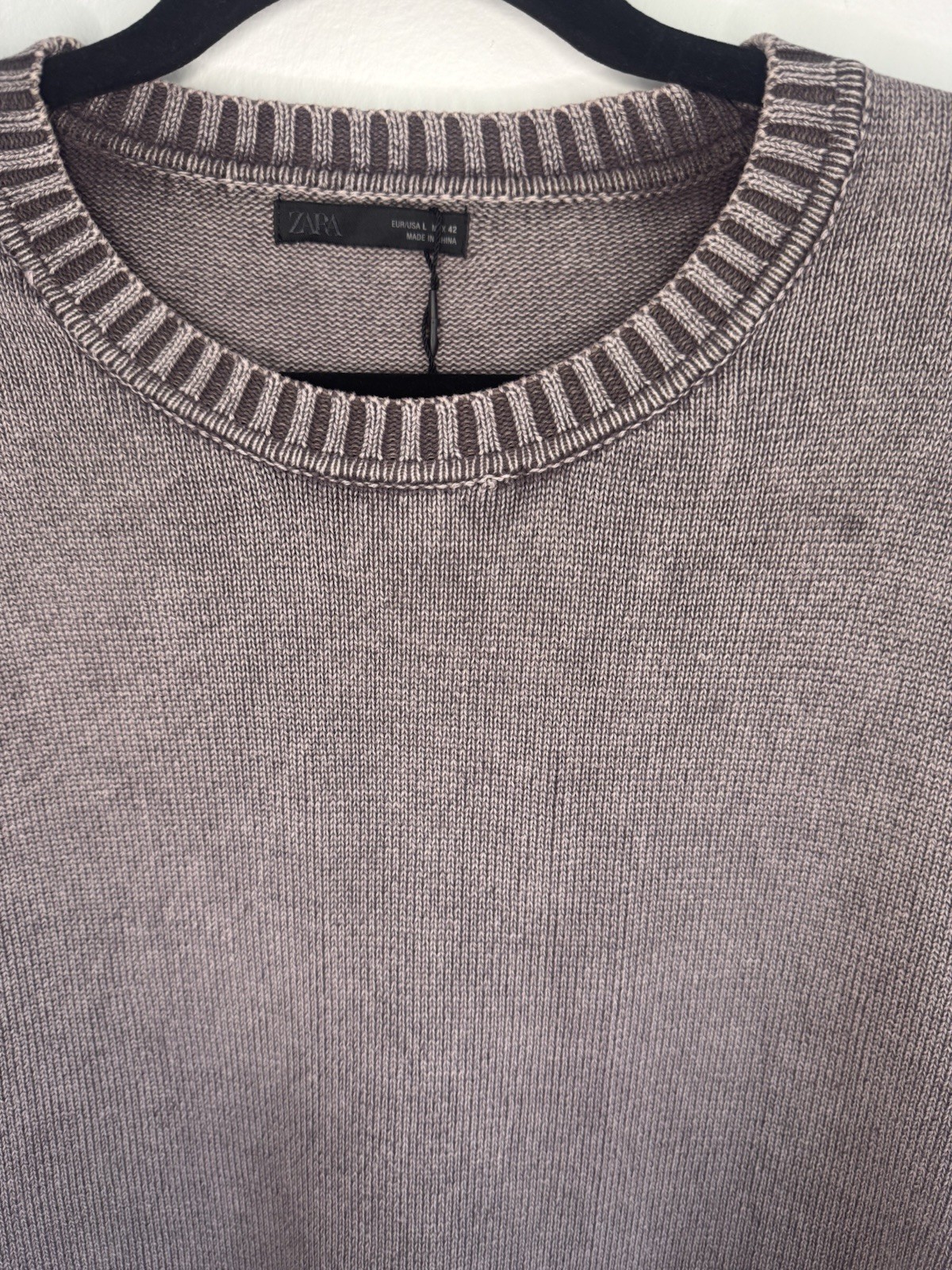 Zara Men's Size Large Crewneck Textured Knit Khaki Green Sweater Relaxed Fit